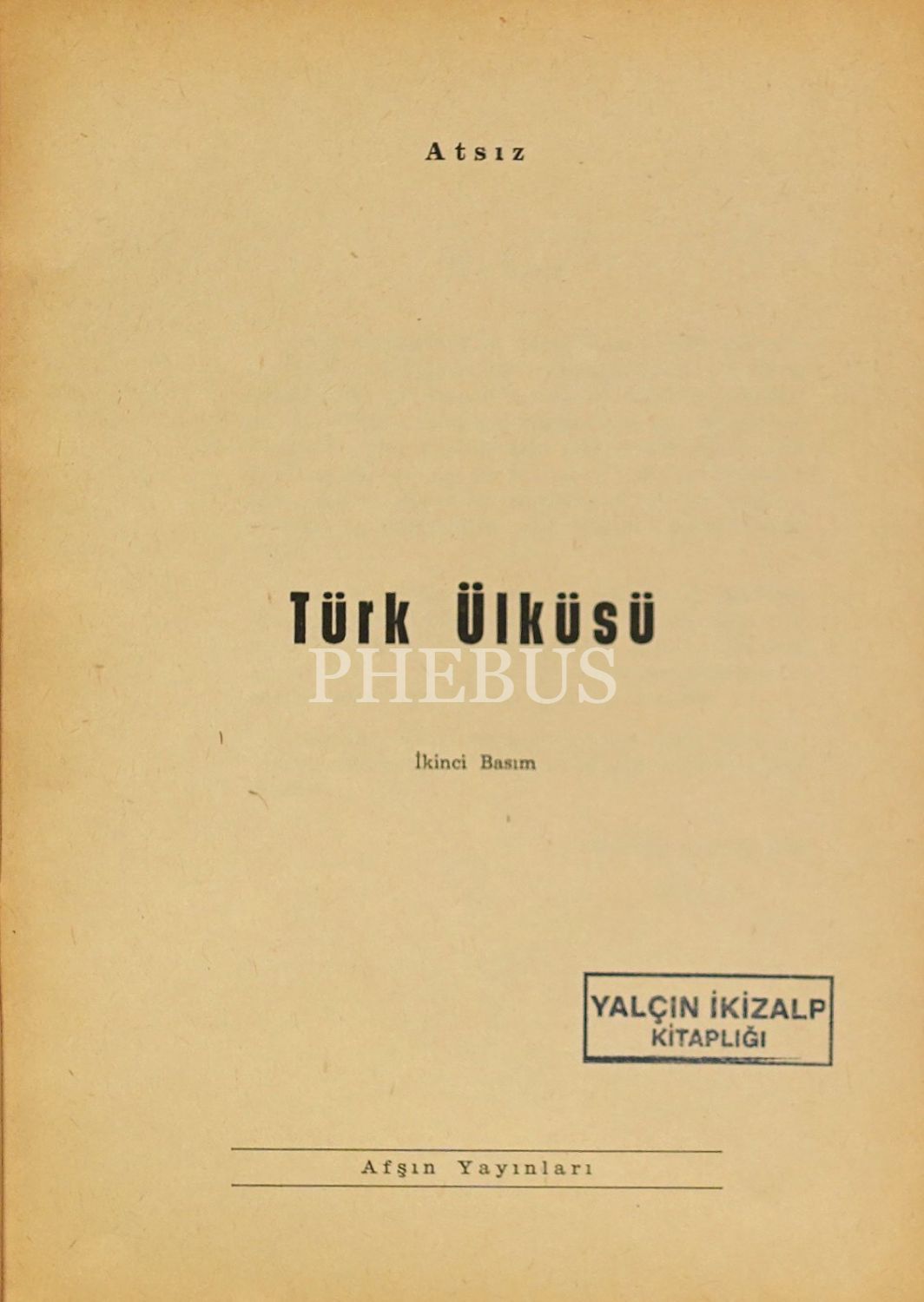 TÜRK ÜLKÜSÜ, Atsız, 1966, Afşın Yayınları, 71 sayfa, 14x20 cm...