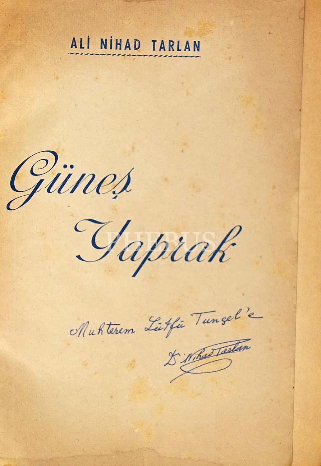 GÜNEŞ YAPRAK, Ali Nihad Tarlan, 1953, Anıl Matbaası, 132 sayfa, 14x20 cm, İTHAFLI ve İMZALI...
