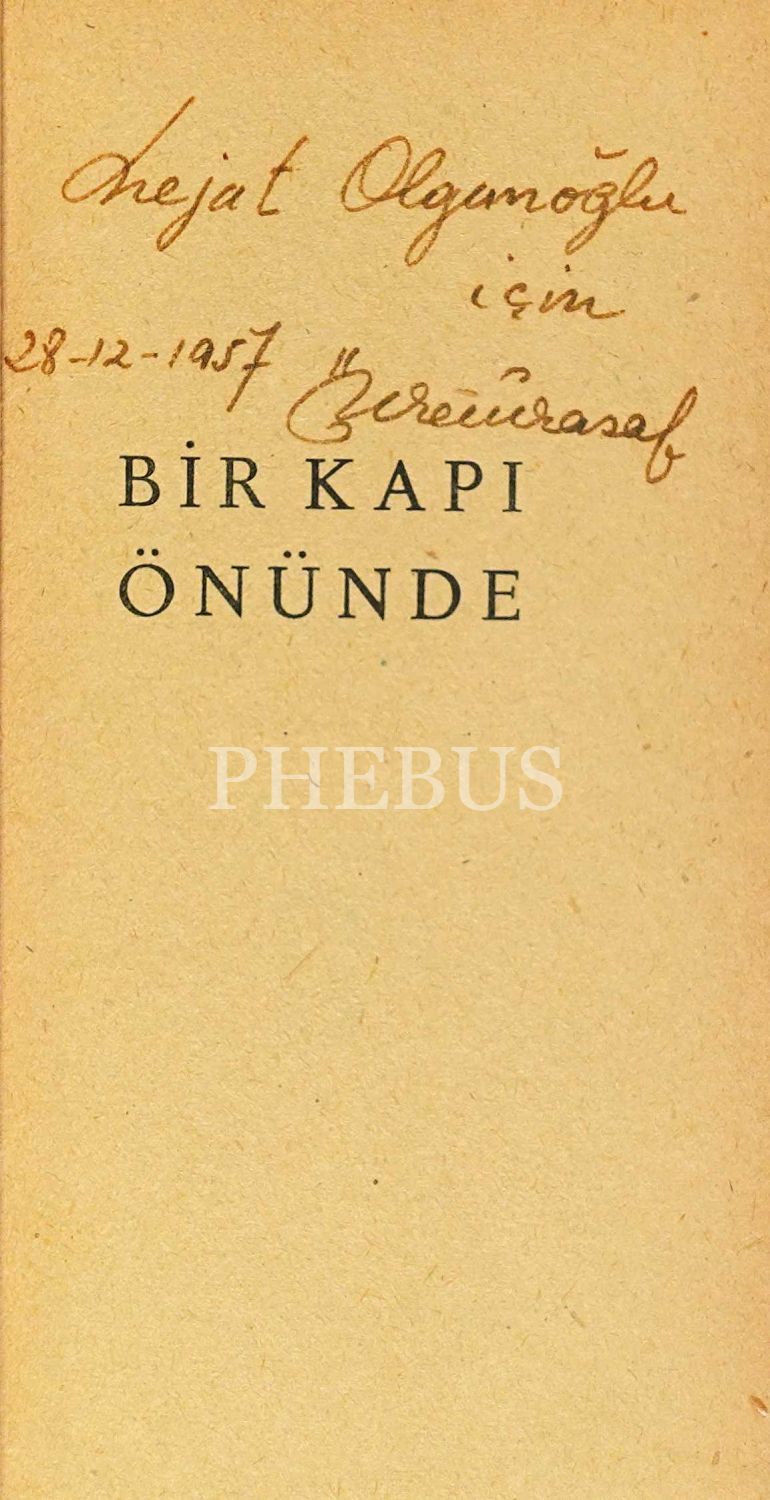 BİR KAPI ÖNÜNDE, Özdemir Asaf, 1957, Yuvarlak Masa Yayınları, 80 sayfa, 11x20 cm, İTHAFLI ve İMZALI...
