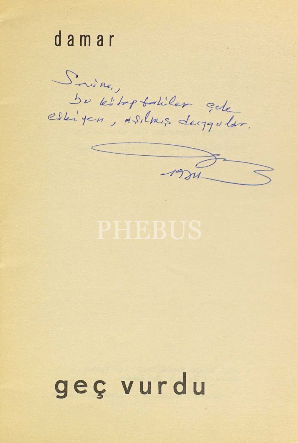 SAAT SEKİZİ GEÇ VURDU, Arif Damar, 1962, İstanbul Matbaası, 30 sayfa, 14x20 cm, İTHAFLI ve İMZALI...