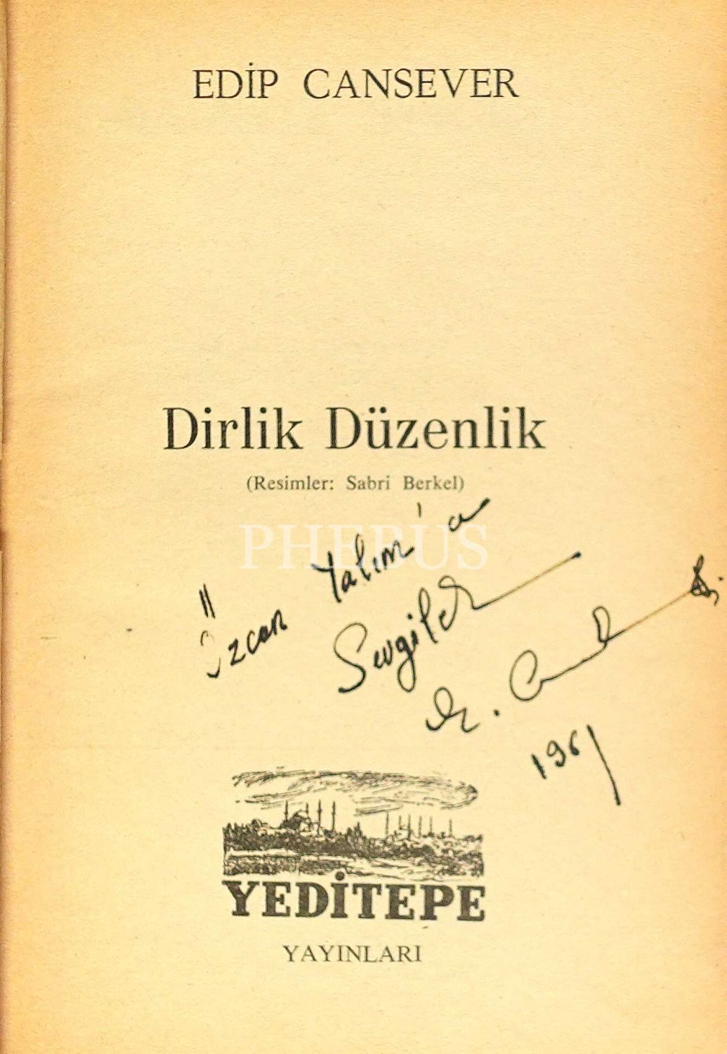İthaf, "Özcan Yalım´a sevgiler. 1961" şeklindedir.
