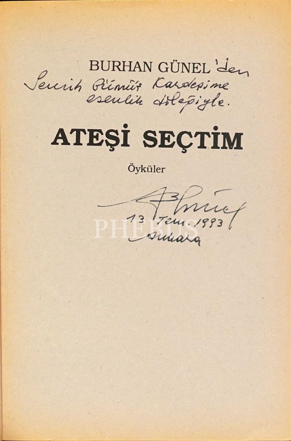 İthaf, "Burhan Günel´den Semih Gümüş kardeşime esenlik dileğiyle. 13 Temmuz 1993" şeklindedir.