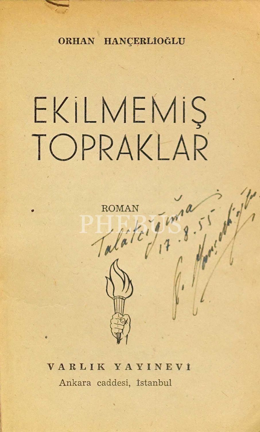 EKİLMEMİŞ TOPRAKLAR, Orhan Hançerlioğlu, 1954, Varlık Yayınları, 125 sayfa, 12x17 cm, İTHAFLI ve İMZALI...