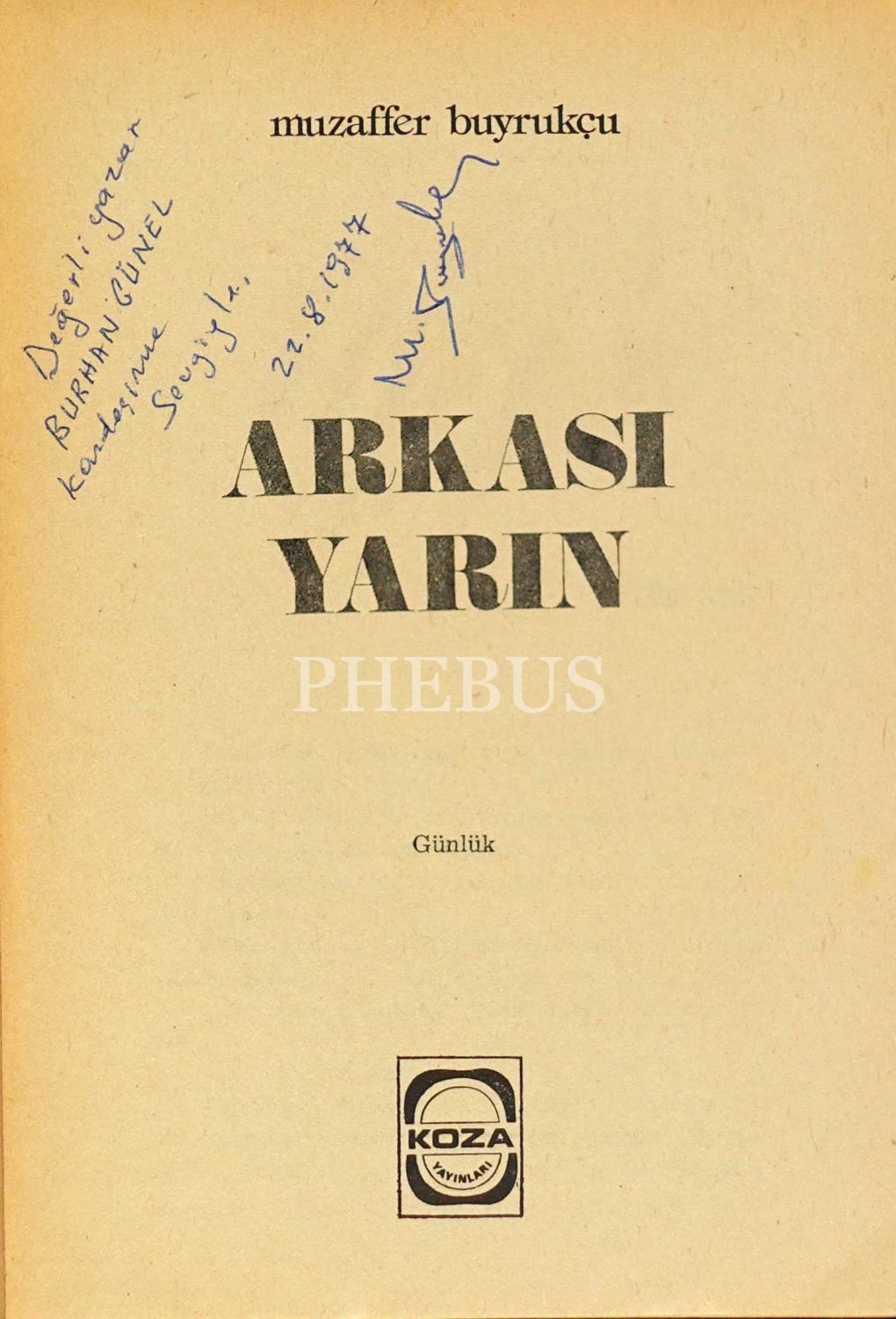 ARKASI YARIN, Muzaffer Buyrukçu, 1976, Koza Yayınları, 149 sayfa, 14x20 cm, İTHAFLI ve İMZALI...