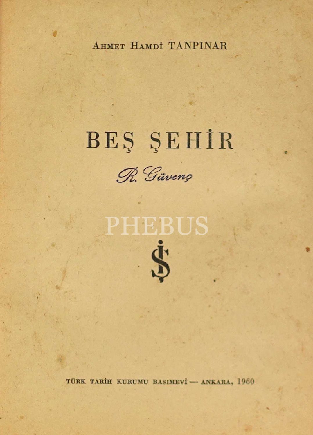 BEŞ ŞEHİR, Ahmet Hamdi Tanpınar, 1960, Türk Tarih Kurumu Basımevi, 333 sayfa, 12x17 cm...