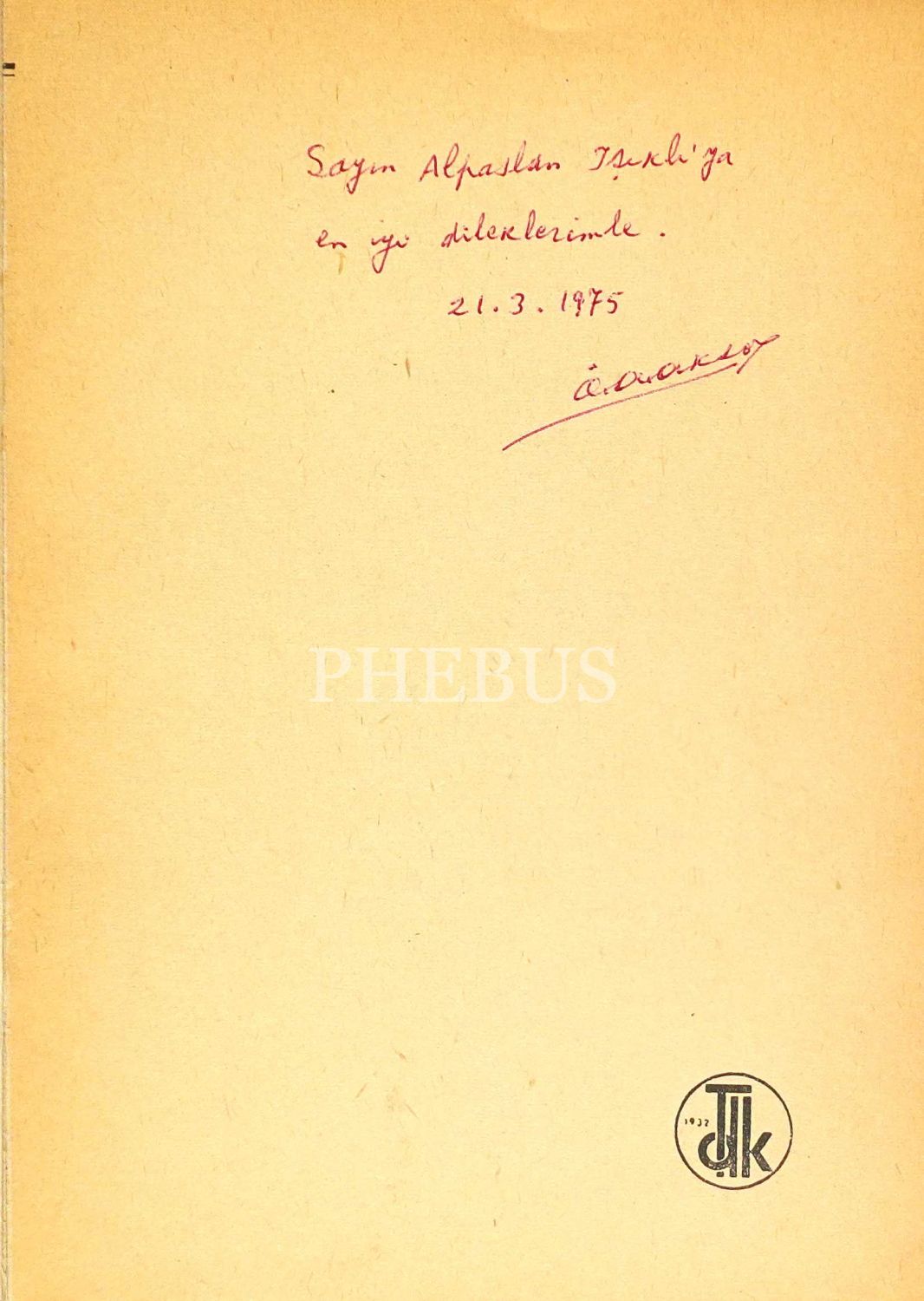 İthaf, "Sayın Alpaslan Işıklı´ya en iyi dileklerimle. 21.3.1975" şeklindedir.