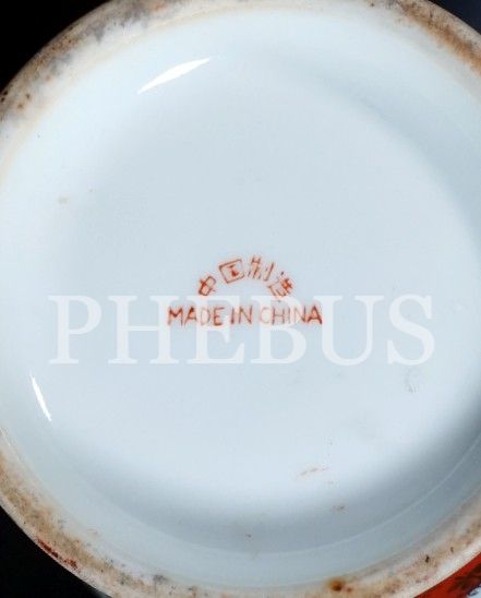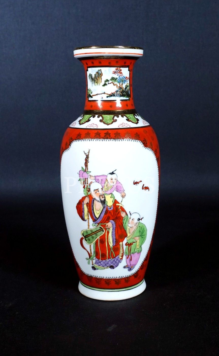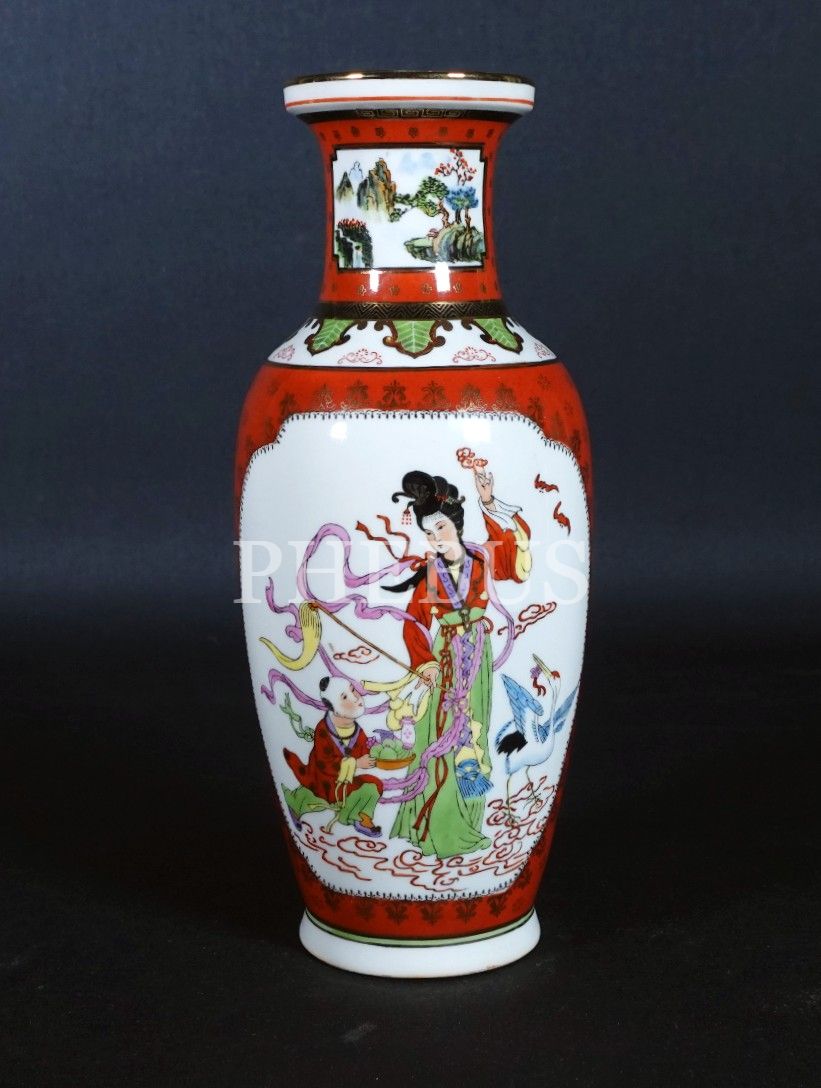 Uzak doğu temalı, elle renklendirilmiş Çin malı porselen vazo, 31 cm yükseklik, 8 cm çap...