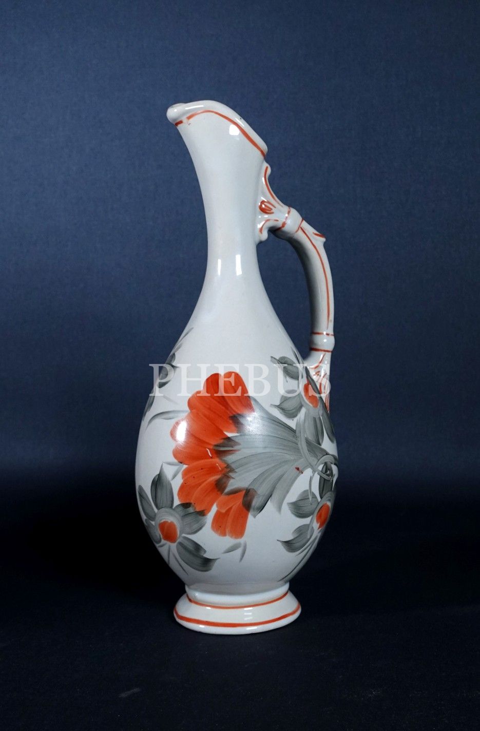 Rus malı, elle renklendirilmiş seramik ibrik, 39 cm yükseklik, 9 cm çap...