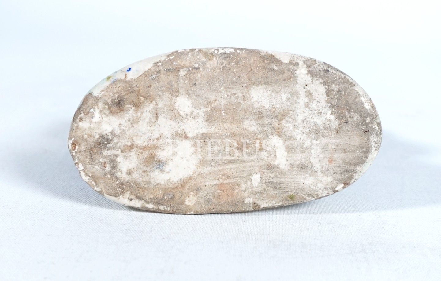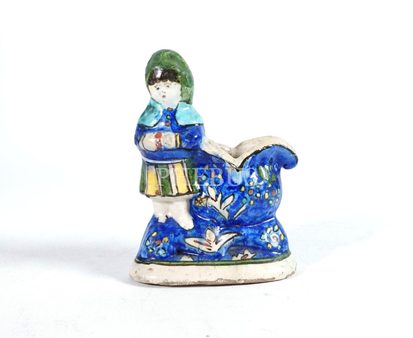 Kütahya seramik kadın biblosu, beyaz hamurlu, beyaz astarlı ve renksiz şeffaf sırlı, sır altı mavi, yeşil ve kahverengi renkleriyle boyanmıştır, 17x12 cm...