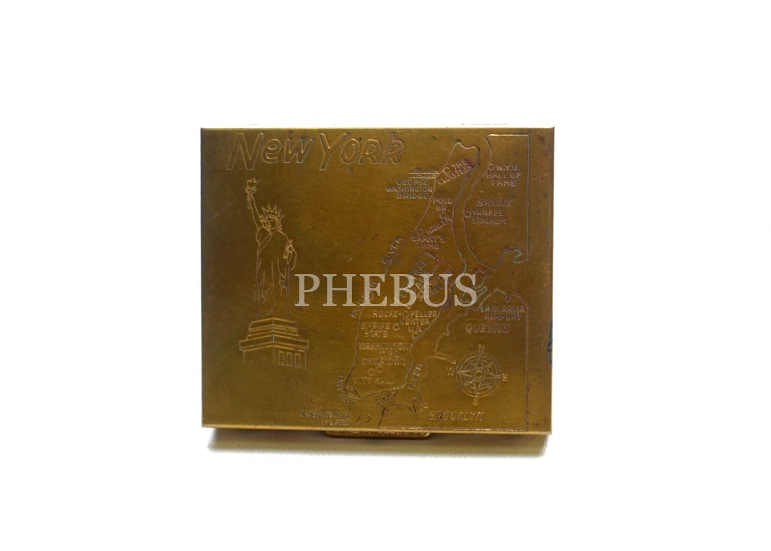 Üzeri New York haritası ve Özgürlük Anıtı görselli pirinç tabaka, 7x6 cm...