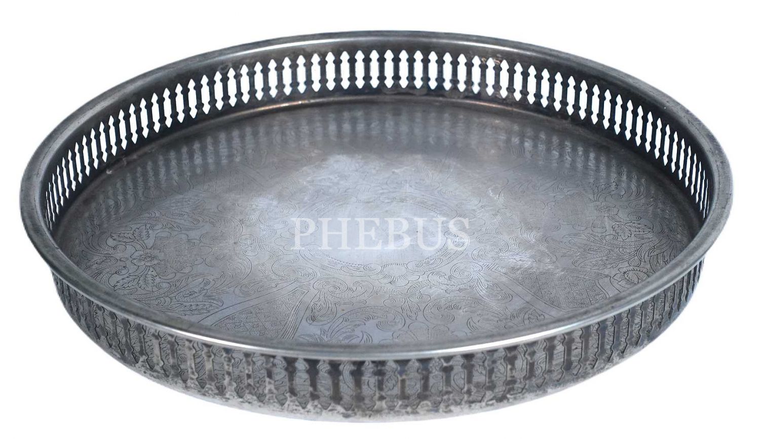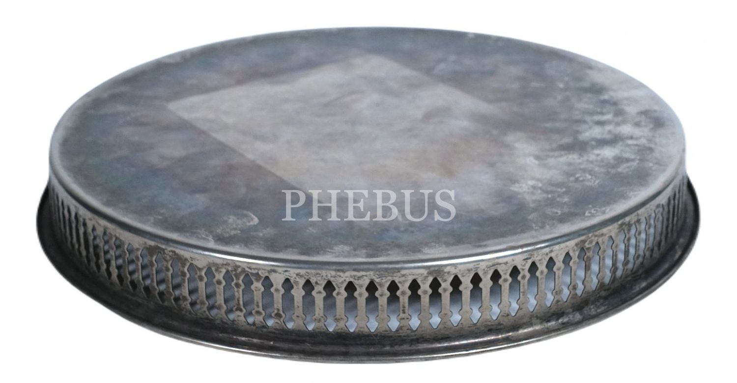 Gövdesi kalem işçilikli gümüş kaplama tepsi, 27x3 cm...