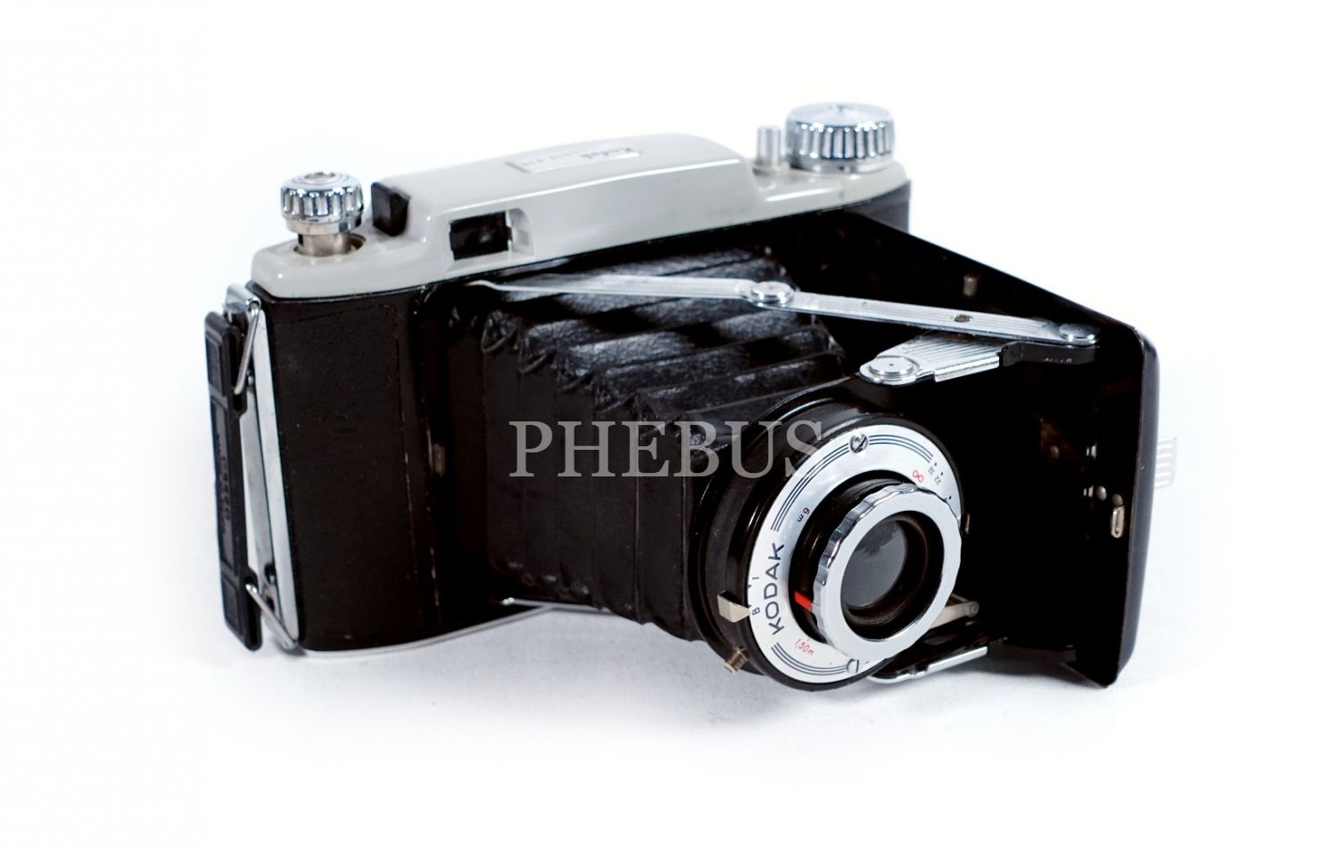 Orijinal deri kabında Kodak marka, Modele BII model körüklü fotoğraf makinesi, körüğü açık halde 13x16x10 cm...