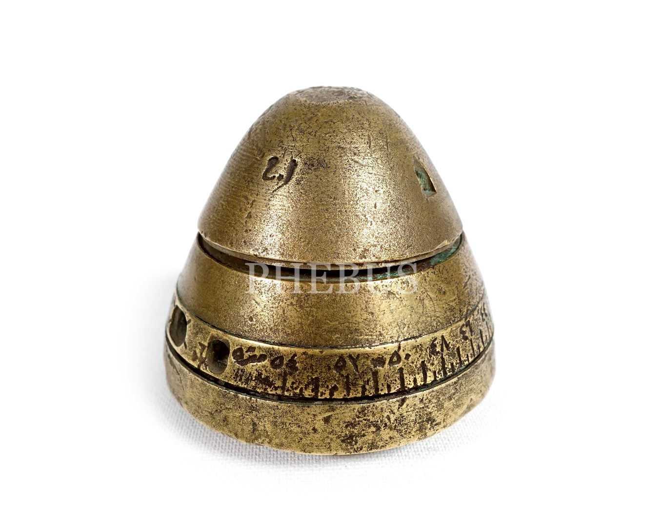 Osmanlı Tüfenk Fabrikası imalatı, üzeri Osmanlıca yazılı ve ölçülü havan topu başlığı, 6x4,5 cm...