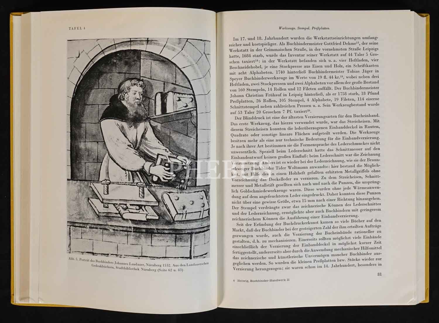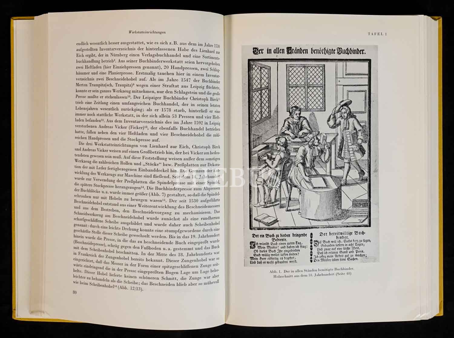 Alman ciltçilik tarihine dair iki ciltlik Almanca kitap: DAS DEUTSCHE BUCHBINDER-HANDWERK, Hellmuth Helwig, 1962, Anton Hiersemann, Stuttgart, 351+428 sayfa, 17x24 cm...