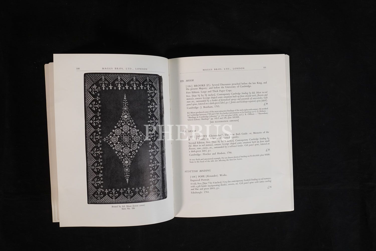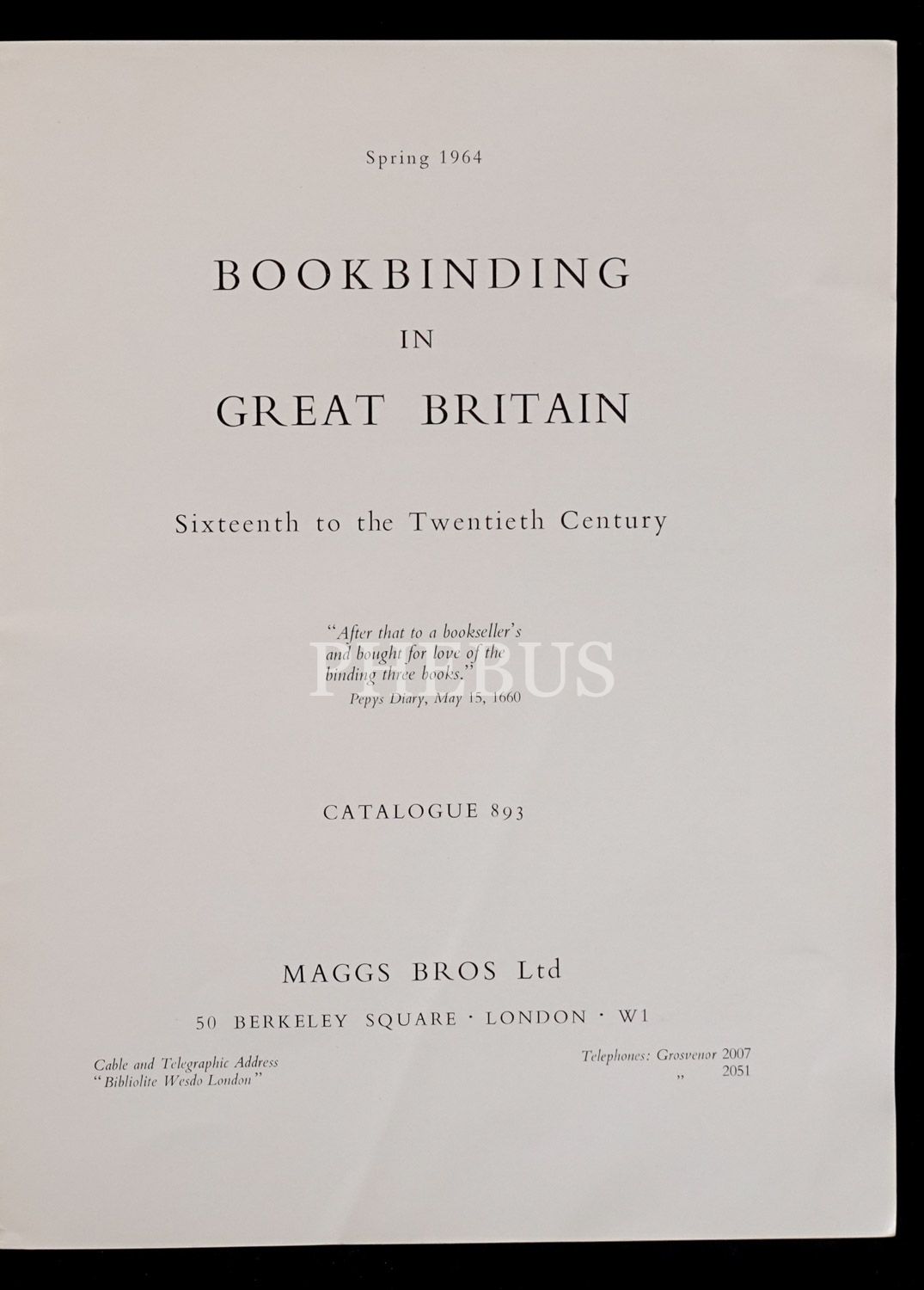 16 ilâ 20. yüzyıllar arasında Britanya´da imal edilen ciltlere dair İngilizce katalog: IN BOOKBINDING GREAT BRITAIN, 1964, Maggs Bros Ltd., 193 sayfa, 19x25 cm...