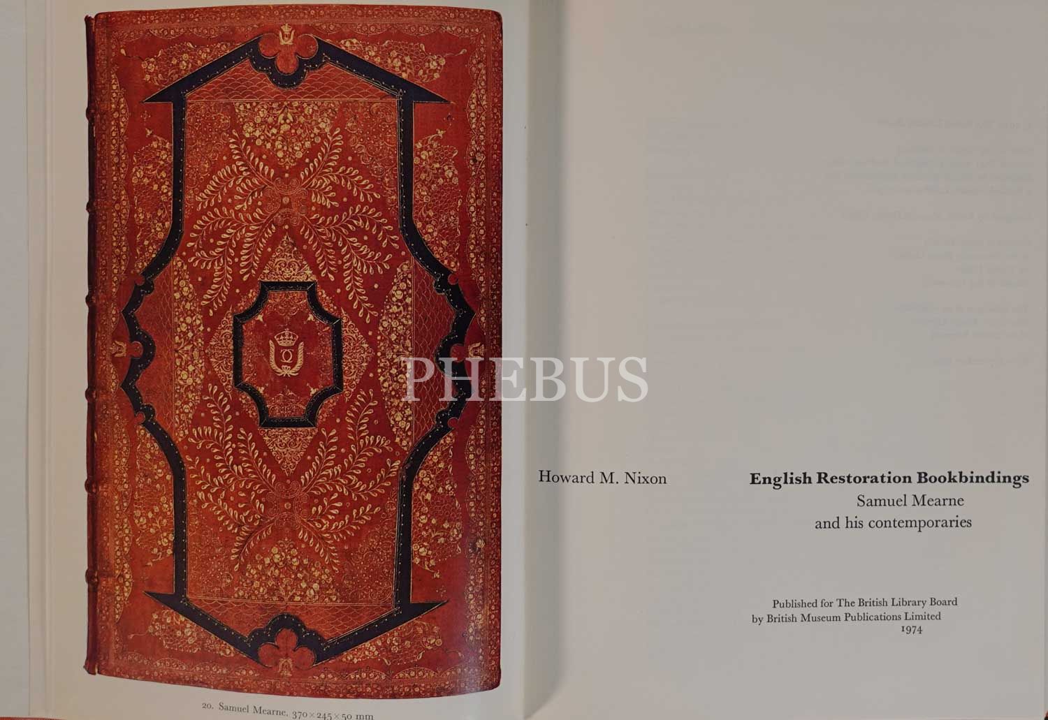 Restorasyon dönemi İngiliz ciltçiliğine dair İngilizce kitap: ENGLISH RESTORATION BOOKBINDINGS, Samuel Mearne, 1974, The British Library Board, 48 sayfa metin + görseller, 19x26 cm...