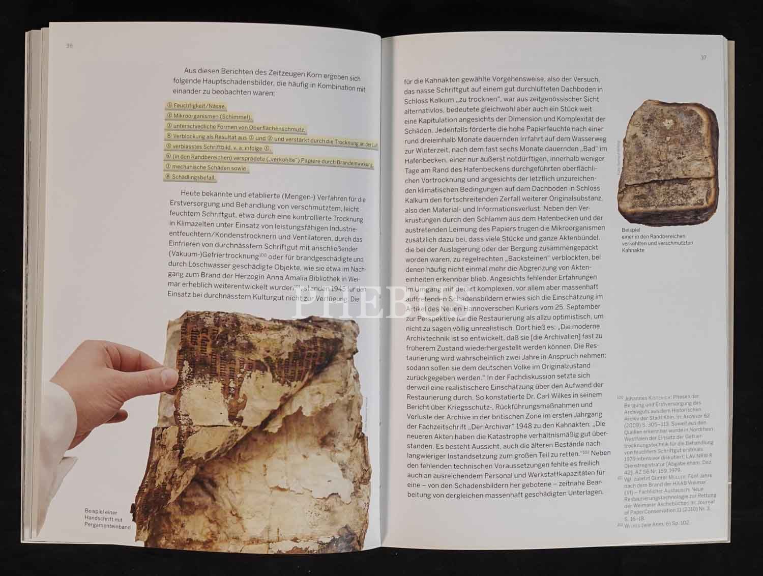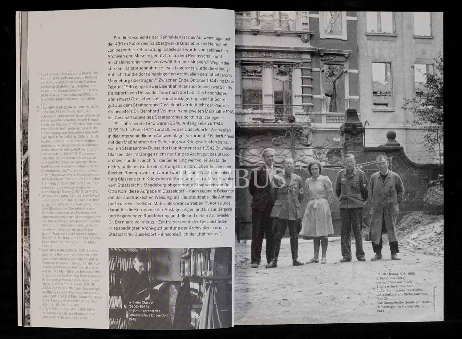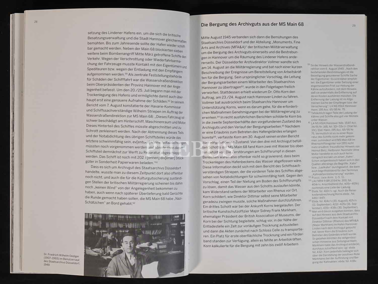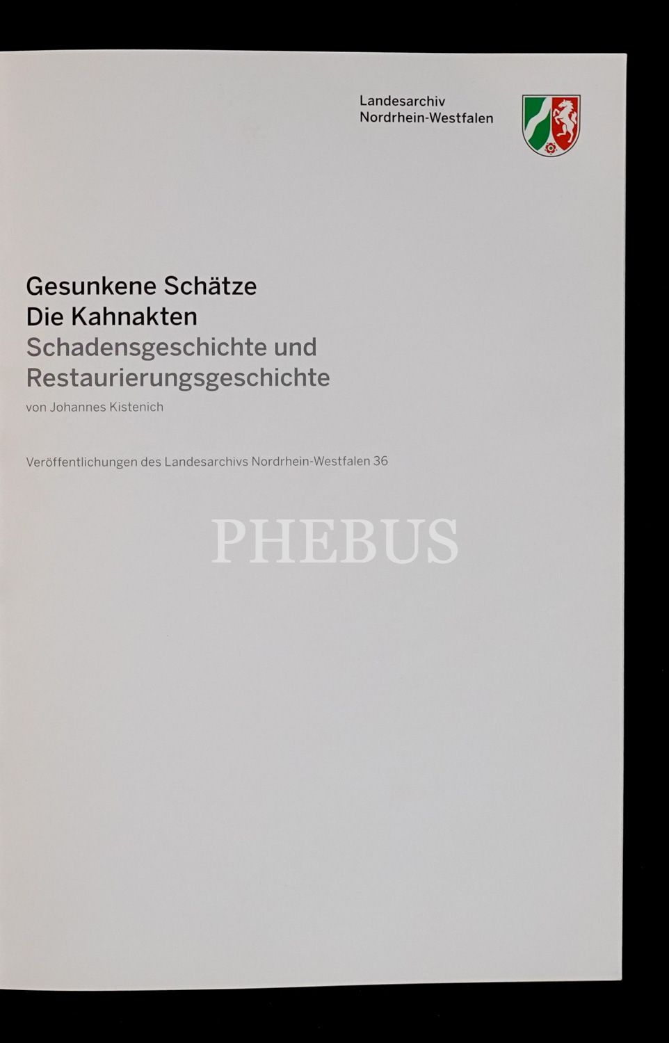 Mart 1945´te mavnalarla nakliye edilirken denizin dibini boylayan Alman Devlet Arşivine ait belgelerin restorasyon çalışmalarına dair Almanca kitap: GESUNKENE SCHATZE DIE KAHNAKTEN, Johannes Kistenich, Landesarchiv Nordrhein-Westfalen, 55 sayfa, 17x24 cm...
