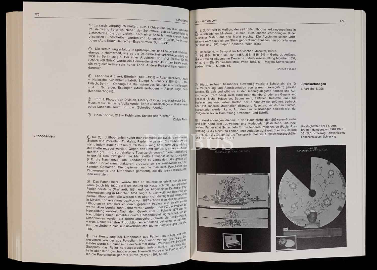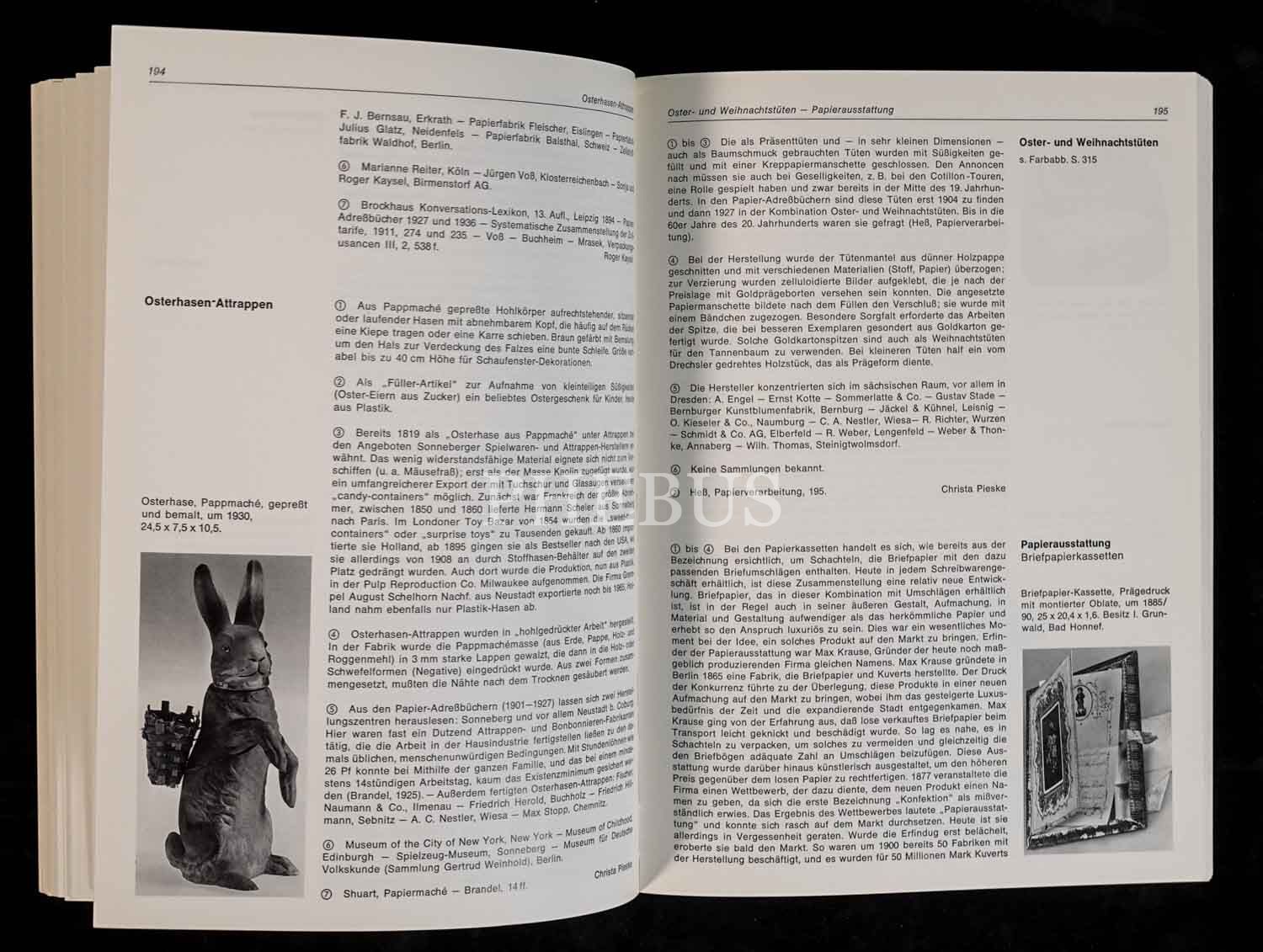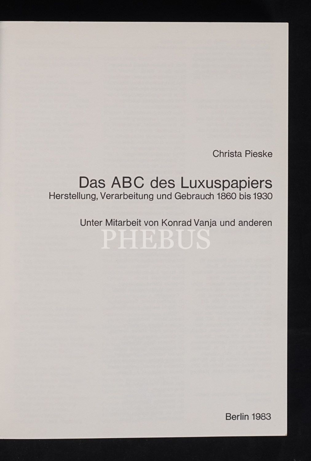 1860 ilâ 1930 yılları arasında lüks kâğıdın üretimi, işlemesi ve kullanımına dair Almanca kitap: DAS ABC DES LUXUSPAPIERS, Christa Pieske, 1983, Museum für Deutsche Volksunde Berlin, 377 sayfa, 17x24 cm...