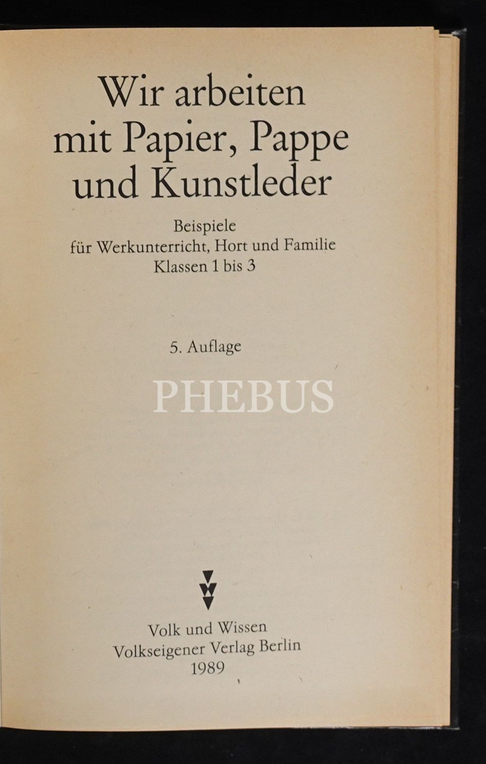 Kâğıt, karton ve suni deri ile el işi dersleri: WIR ARBEITEN MIT PAPIER, PAPPE UND KUNSTLEDER, editörler: Egbert Bahring, Rudolf Gerecke & Siegfried Herrmann, 1989, Volk und Wissen, 176 sayfa, 15x22 cm...