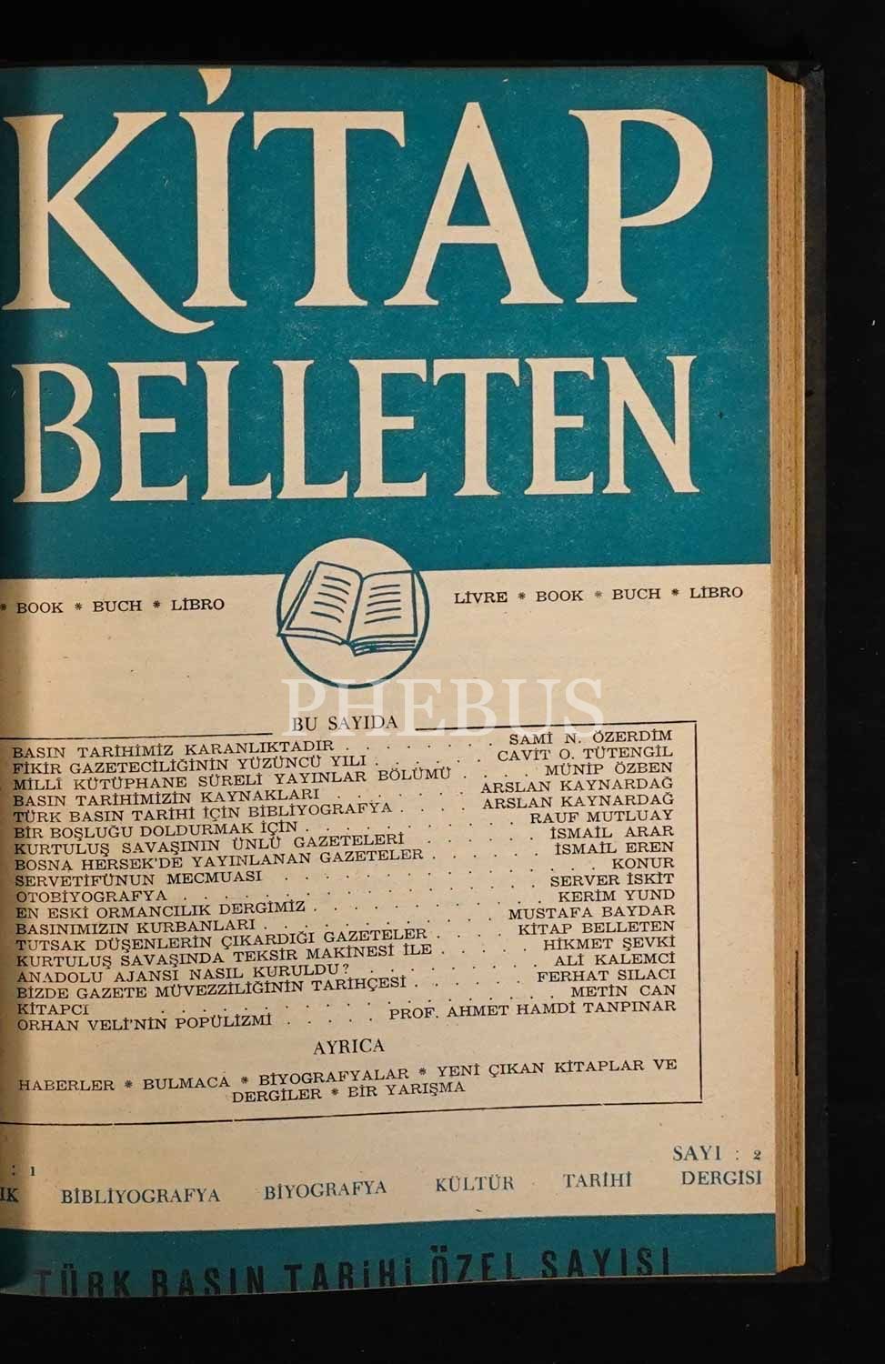 "Aylık Bibliyografya-Biyografya Kültür Tarihi Dergisi" KİTAP BELLETEN´in ilk 12 sayısı tek ciltte, 17x24 cm...
