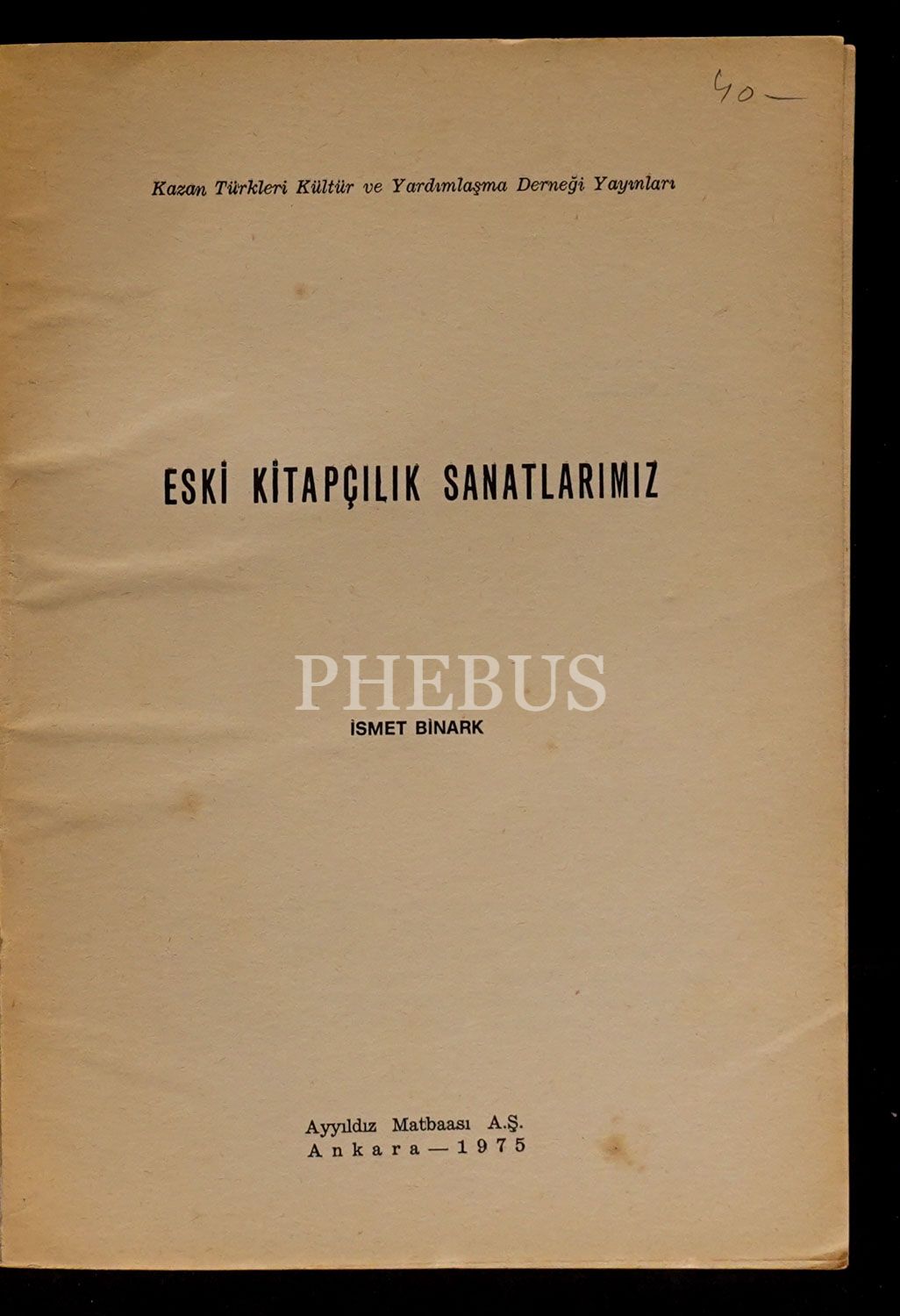ESKİ KİTAPÇILIK SANATLARIMIZ, İsmet Binark, 1975, Kozan Türkleri Kültür ve Yardımlaşma Derneği Yayınları, 162 sayfa, 17x24 cm...