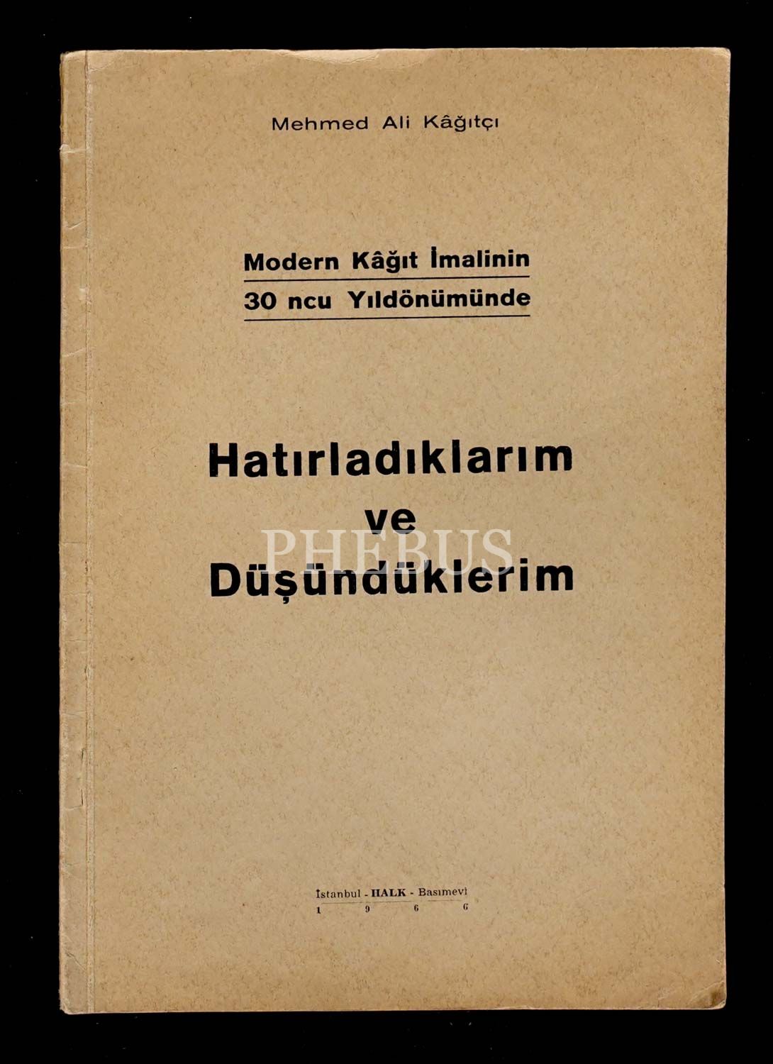 "Modern Kâğıt İmalinin 30ncu Yıldönümünde" HATIRLADIKLARIM VE GÖRDÜKLERİM, Mehmed Ali Kâğıtçı, 1966, Halk Basımevi, İstanbul, 48 sayfa, 17x24 cm...