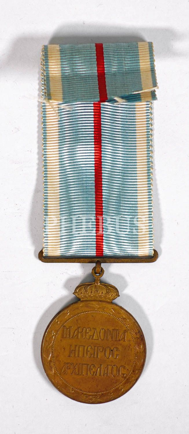 1912-13 1. Balkan (Yunan-Türk) Savaşı Hatıra Madalyası, 1914´te Kurulan ve Muharebelerde veya Deniz Muharebelerinde Yer Alan veya Muharabe Bölgelerinde Komutanlık ve Yardımcı Hizmetlerde Görev Yapan Tüm Silahlı Kuvvetlerin Erkeklerine Verilen Bir Yunan Madalyasıdır. Madalya Bronzdan Yapılmış Olup 30 mm Çapındadır. Kurdele ve Askısı Orijinaldır.