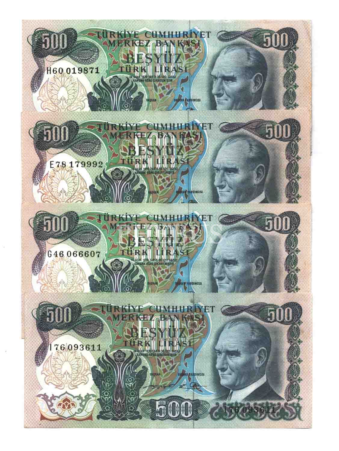 6. Emisyon, 500 Lira, E-G-H-I, ÇÇT+