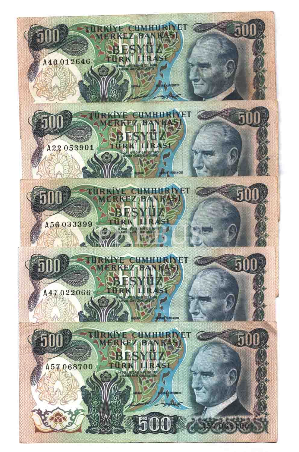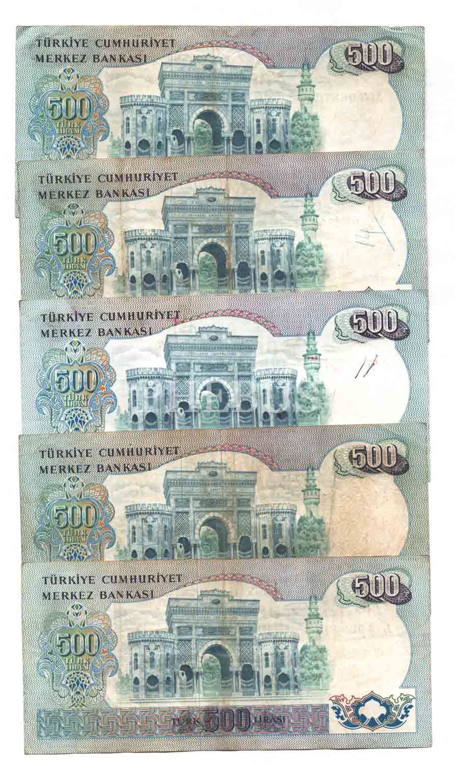 6. Emisyon, 500 Lira, A 5 Adet, Temiz/ÇT
