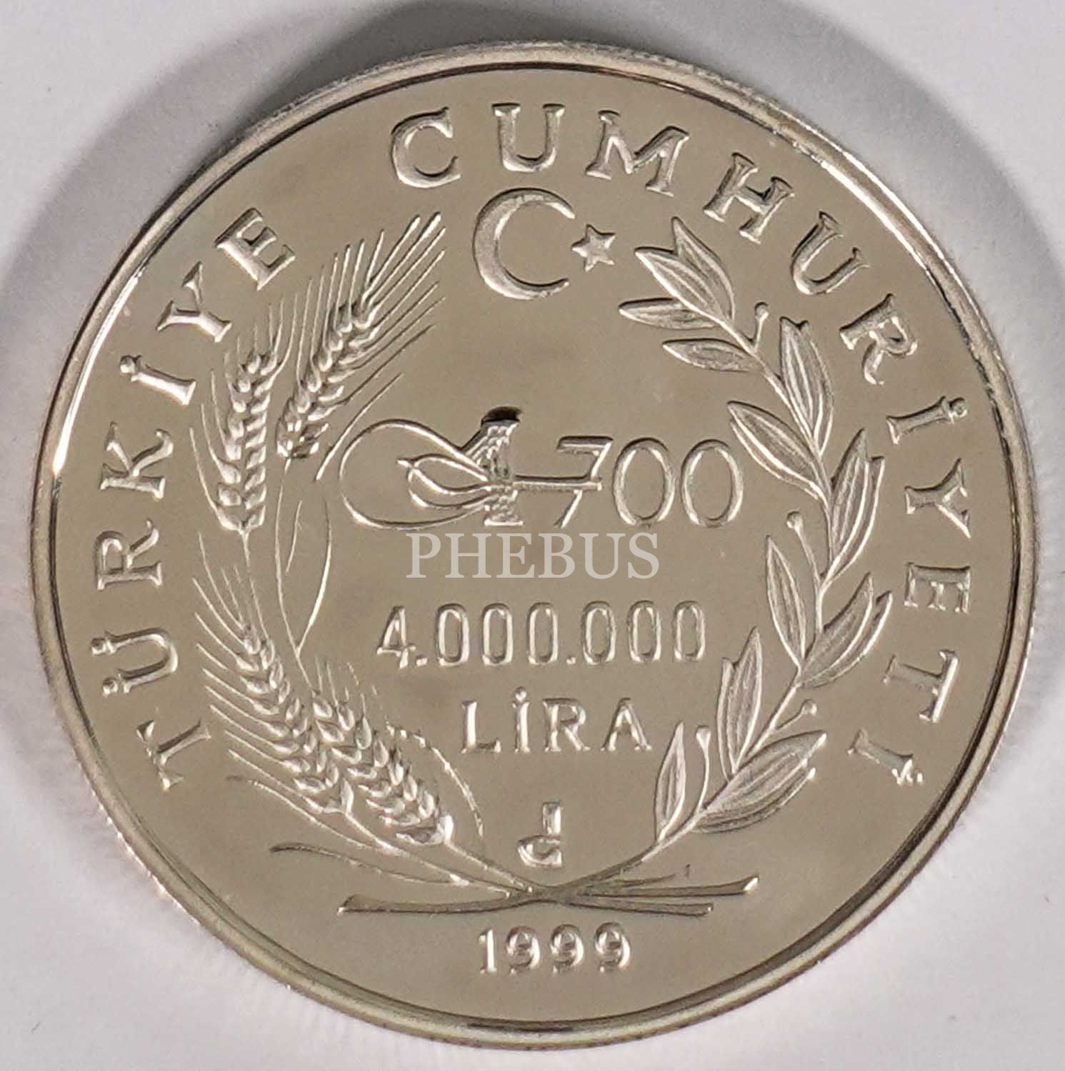 1999, 4.000.000 Lira, Osmanlı İmparatorluğu´nun Kuruluşunun 700. Yılı, Sertifikalı
