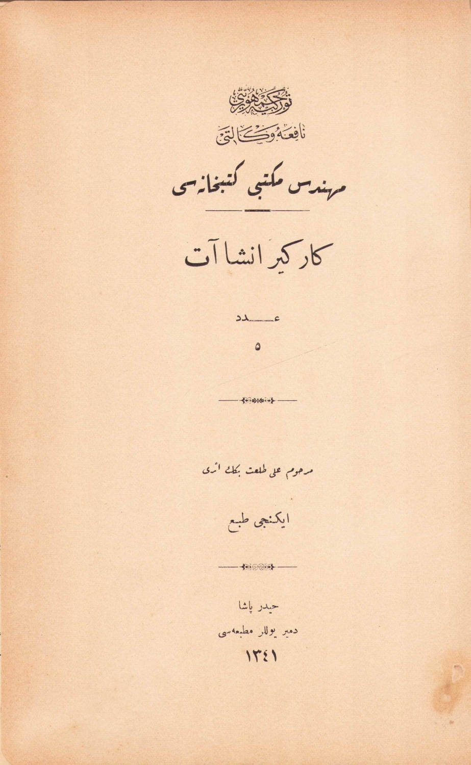Türkiye Cumhuriyeti Nafia Vekaleti Mühendis Mektebi Kütüphanesi, Aded: 5