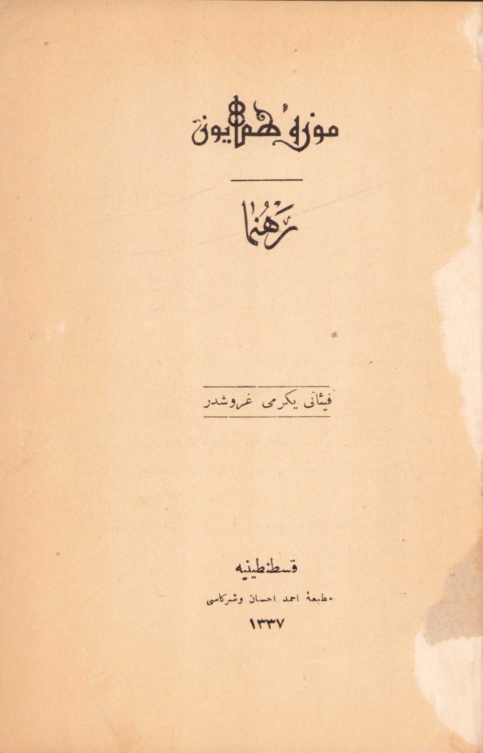 Osmanlıca Müze-i Hümayun Rehnüma, Vahid, Matbaa-i Ahmed İhsan Matbaası, 1337, İstanbul, 86 sayfa, 13x19 cm, ÖZEGE; 15047
