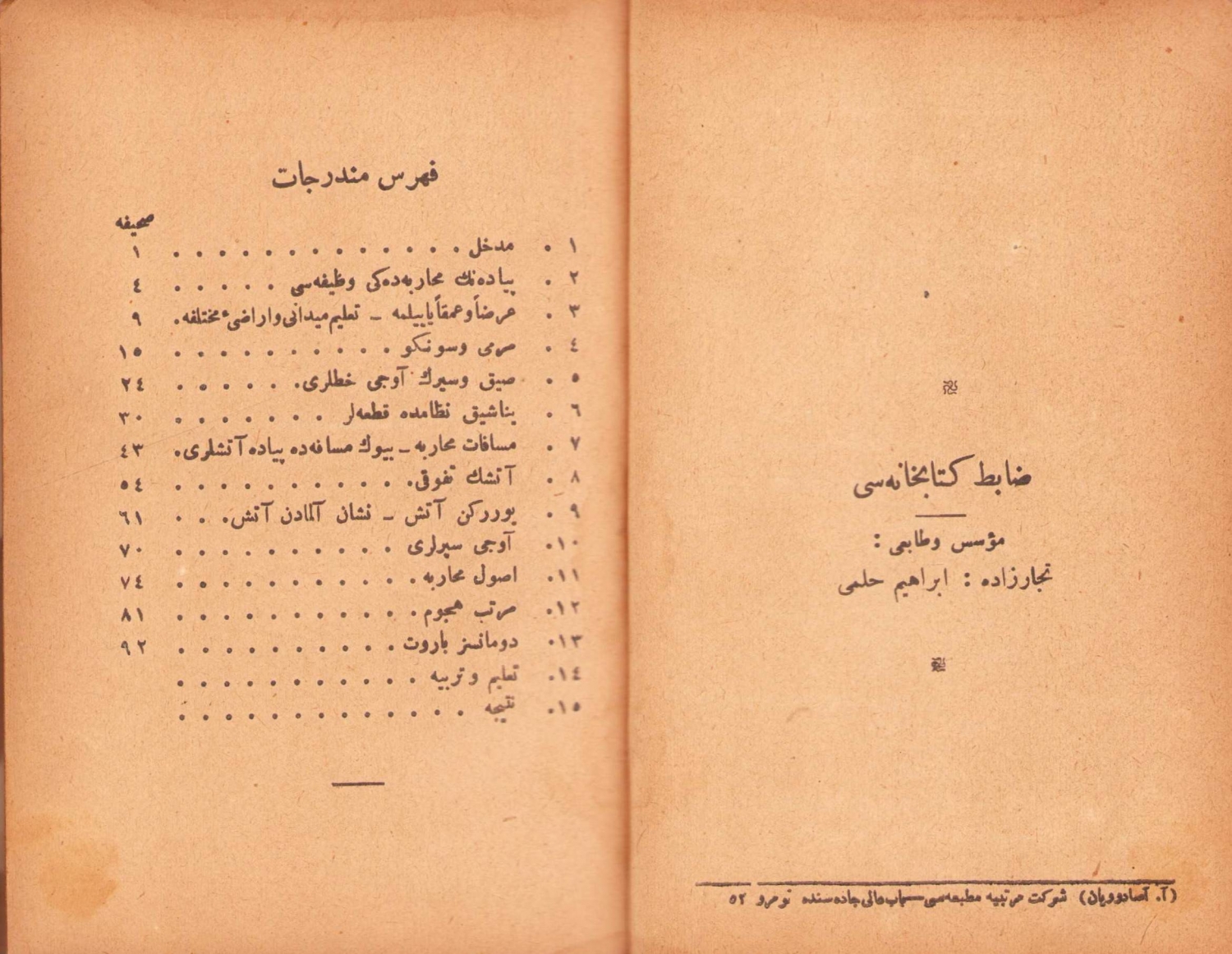 1- Ahval-i Hazıraya Tatbiken Piyadenin Muharebesi Hakkında Mülahazat, von Schellendorf,, çev., Ahmet Refik, A. Asaduryan Şirket-i Mürettibiye Matbaası, İstanbul, 1317, 111 sayfa, ÖZEGE; 289 2- Ameli ve Nazari Endaht, Ali Fazıl, A. Asaduryan Şirket-i Mürettibiye Matbaası, şekilli, son sayfası kopuk, 138 sayfa, ÖZEGE; 664. 3- Bölüğün Muharebesi, Müller, çev., Nuri, A. Asaduryan Şirket-i Mürettibiye Matbaası, 240 sayfa, 11x16 cm