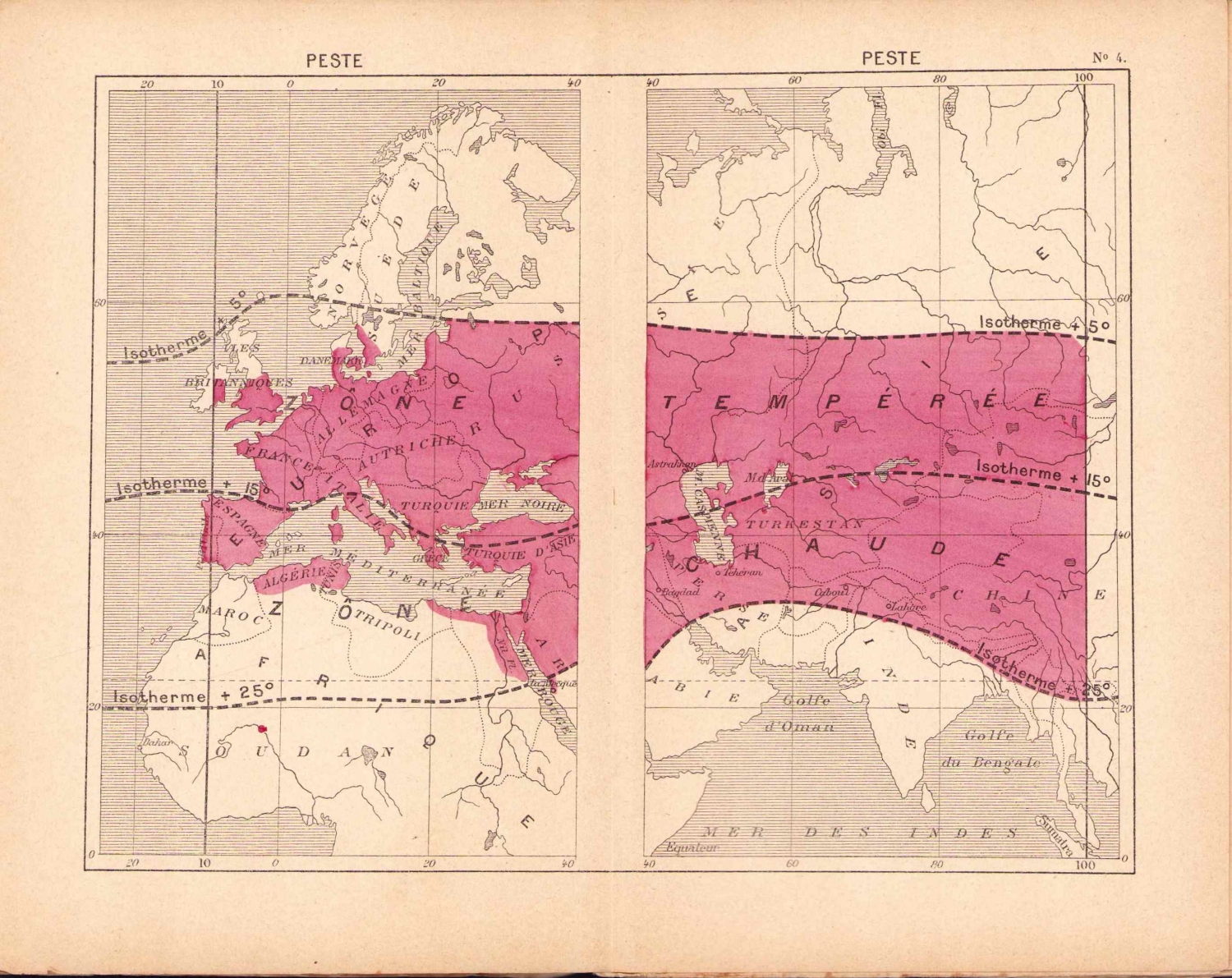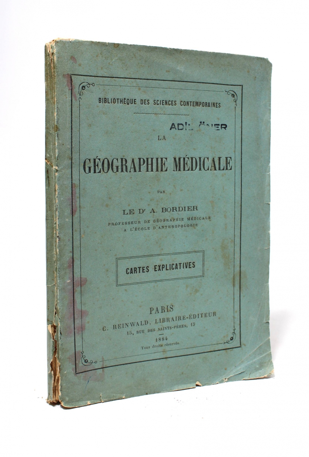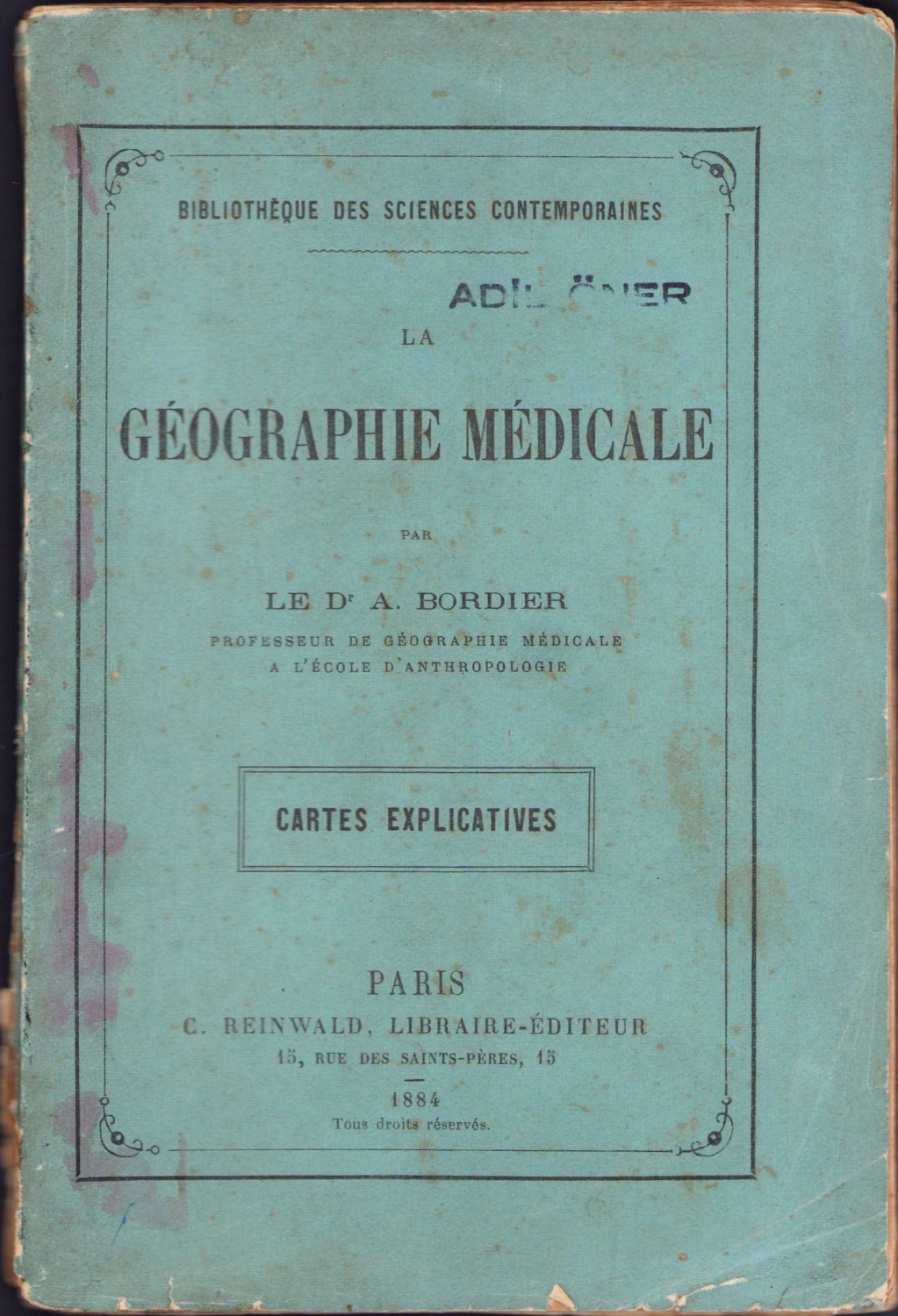 Fransızca Geographie Medicale / Tıbbi Coğrafya Atlası, Le Dr. A. Bordier, Paris, 1884, sırtı haliyle, 21 harita mevcut, 12x18 cm
