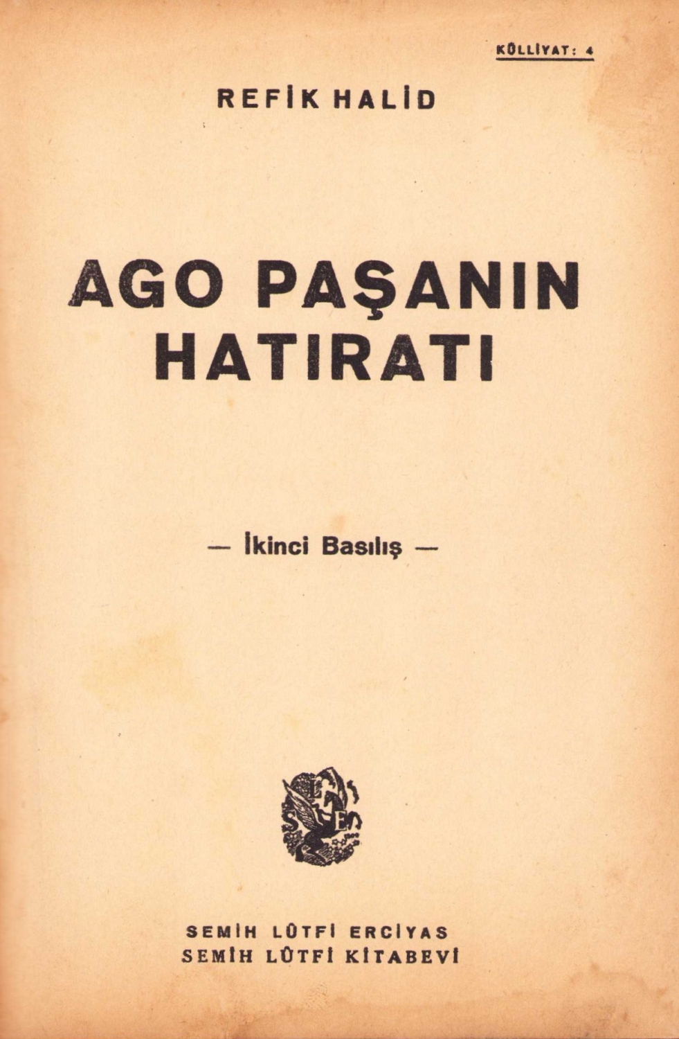 AGO Paşanın Hatıratı, Refik Halid, ikinci baskı, 1922, 159 sayfa, 14x20 cm