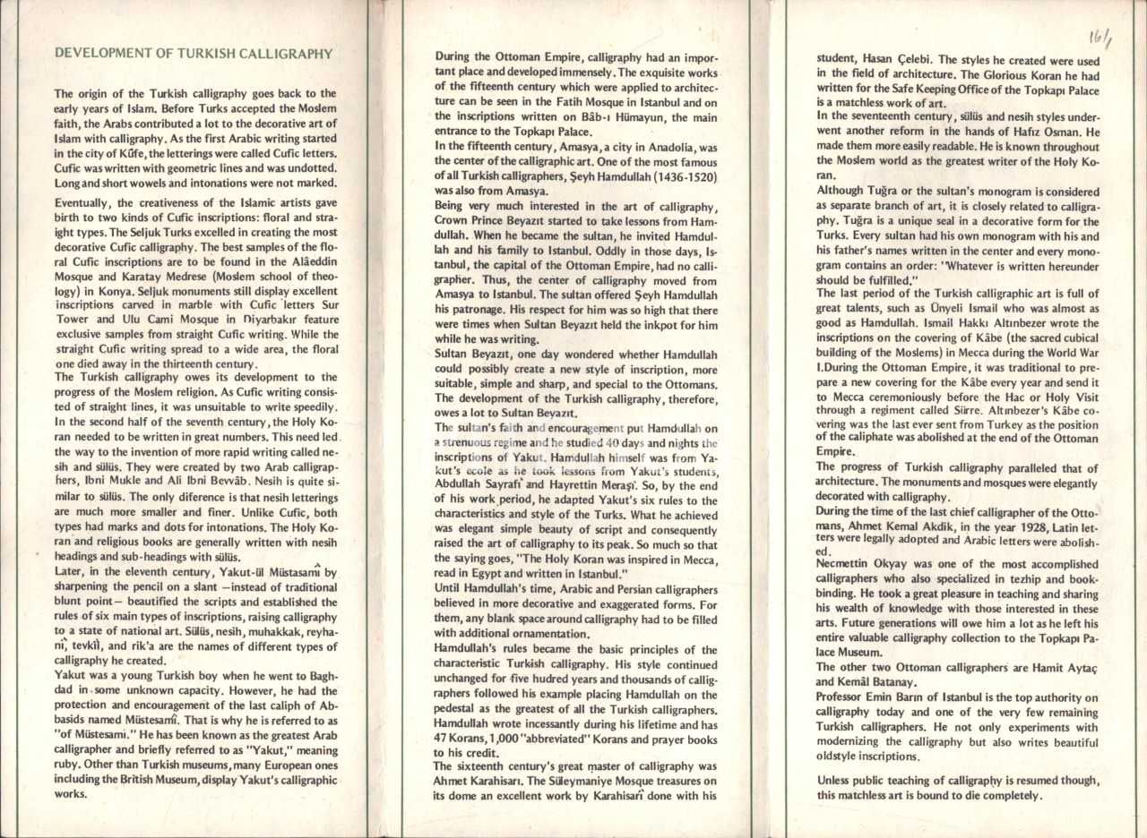 Emin Barın "The Exhibition of Turkish Caligraphy" sergisi broşürü, 1984, 32x24 cm...