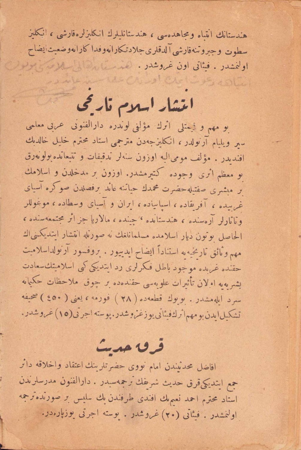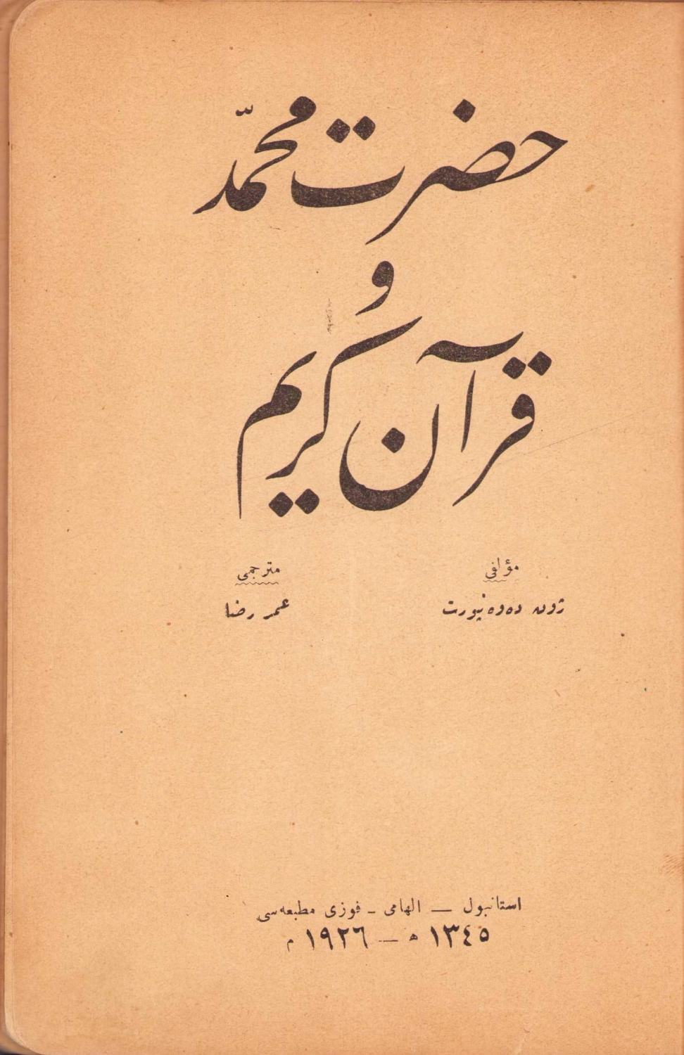 Osmanlıca Hazreti Muhammed ve Kur'anı Kerim, John Davenport, çev., Ömer Rıza, İlhami - Fevzi Matbaası, İstanbul, 1345, 170 sayfa, 14x20 cm, ÖZEGE; 7234