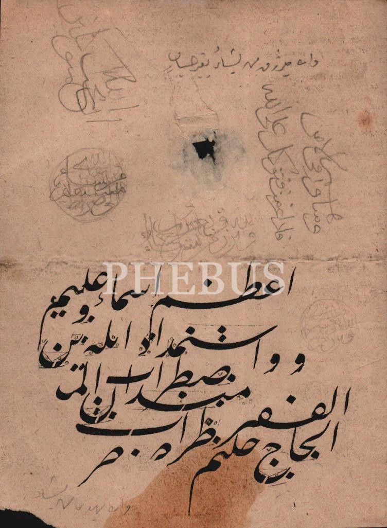 Halim Özyazıcı terekesinden ketebeli talik meşk ve sülüs kalp çalışmaları, arkalı-önlü, 13x17cm...