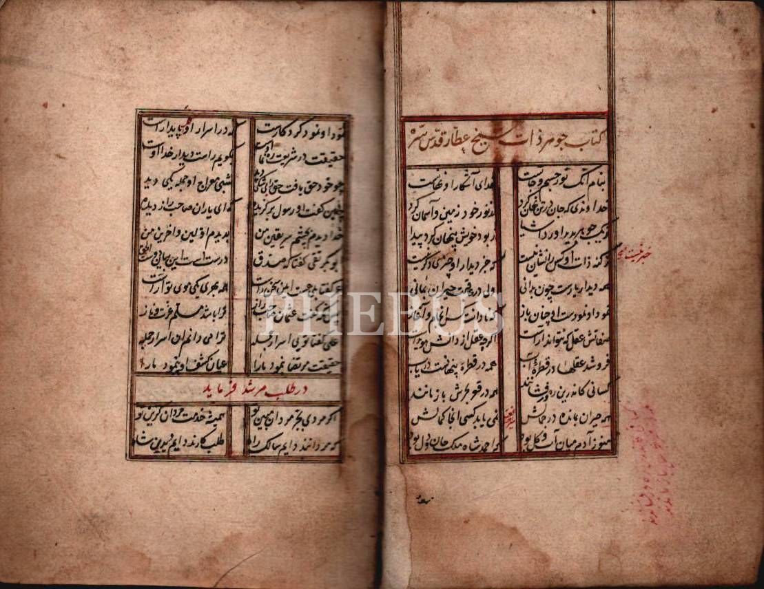 El yazması, ebrulanmış cildinde, ilk sayfaları altın cetvelli, talik PEND-İ ATTAR, tasih ve tamamlayan Osman Efendi, 1268, 98 sayfa, 10x15 cm...