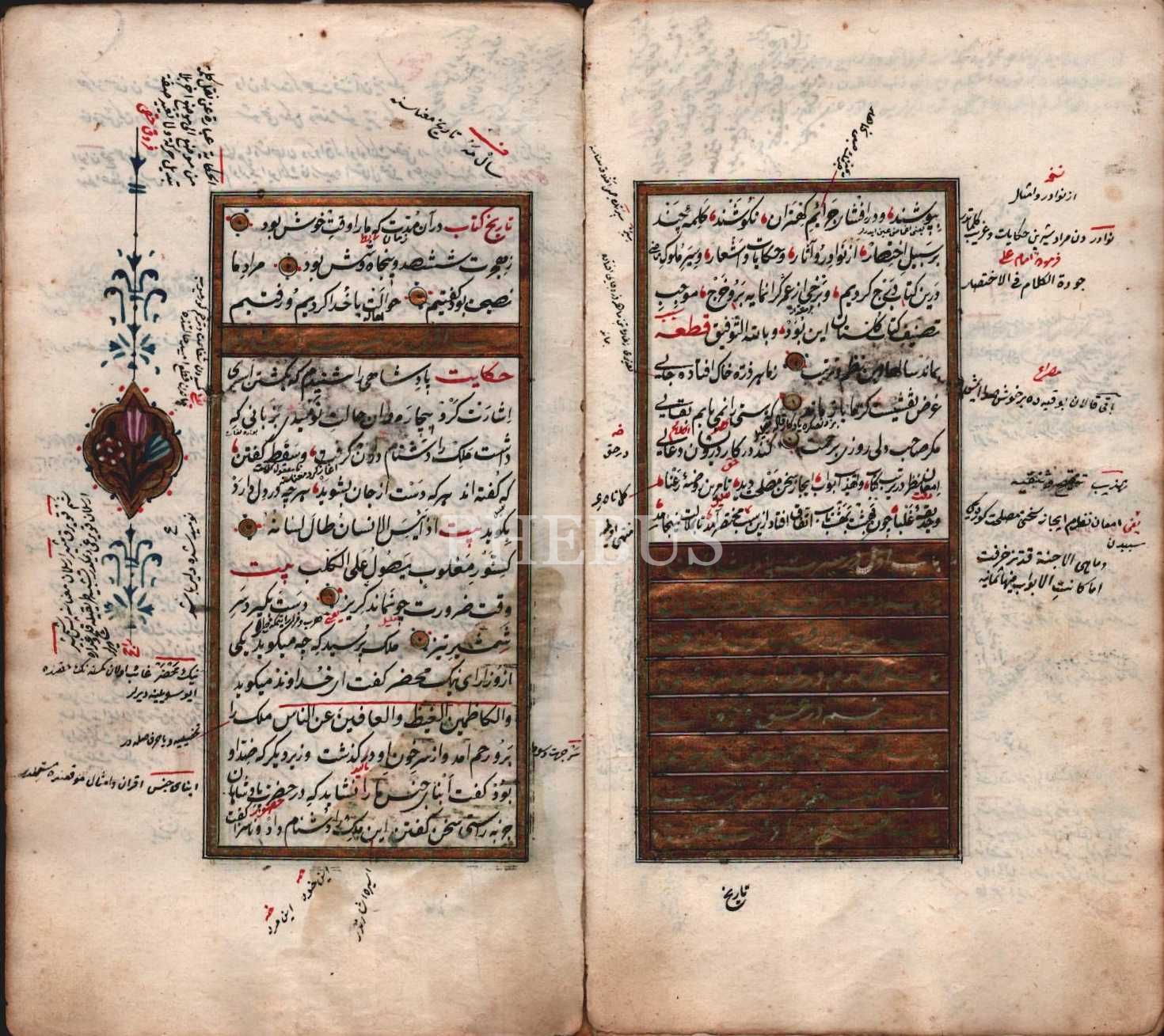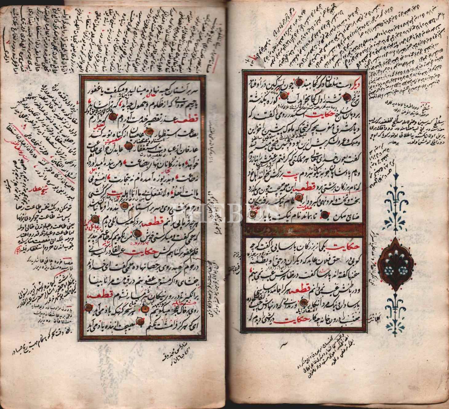 El yazması, ser levhası altın ve çiçek bezemeli, çiçek motifli miklepli deri cildinde GÜLİSTAN, Şeyh Sadi Şirazî, Mustafa Daf´i ketebeli, 1191, 216 sayfa, 12x22 cm...