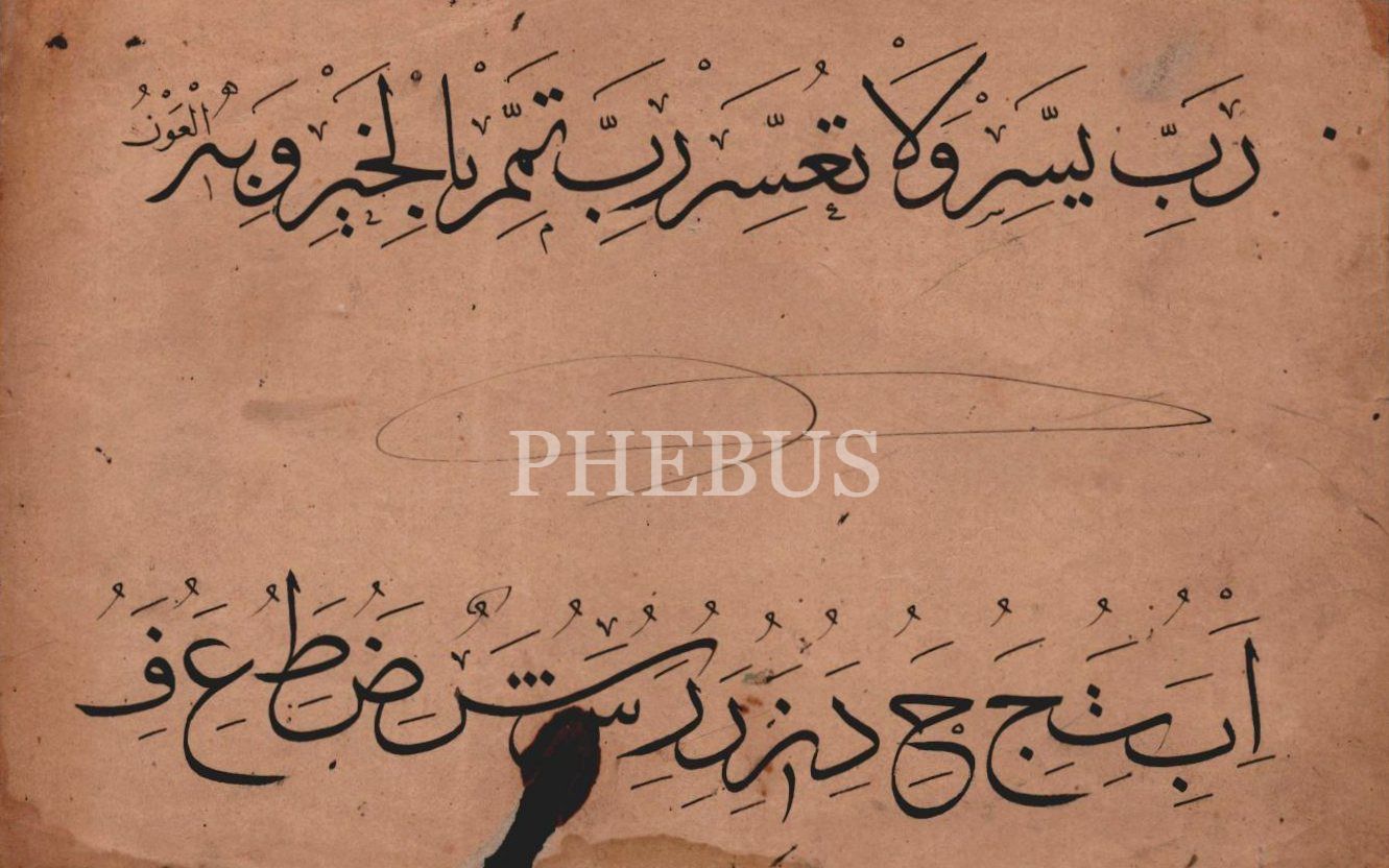 Hoca işi sülüs "Rabbi Yessir" ve hurufât meşki, 23x15 cm...