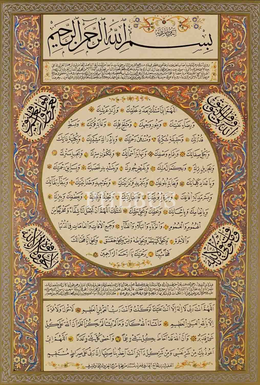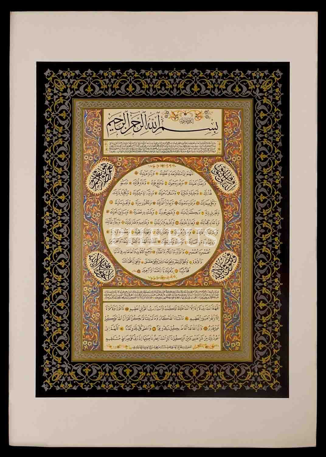 Bakkal Arif Efendi ketebeli "İrcica" baskısı sülüs nesih Hİlye-i Şerif, 34x49 cm....
