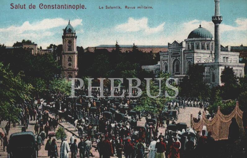 Yıldız Camii´nde bir selamlık merasimi, "Constantinople Le Selamlik. Revue militaire", İstanbul, 14x9 cm...