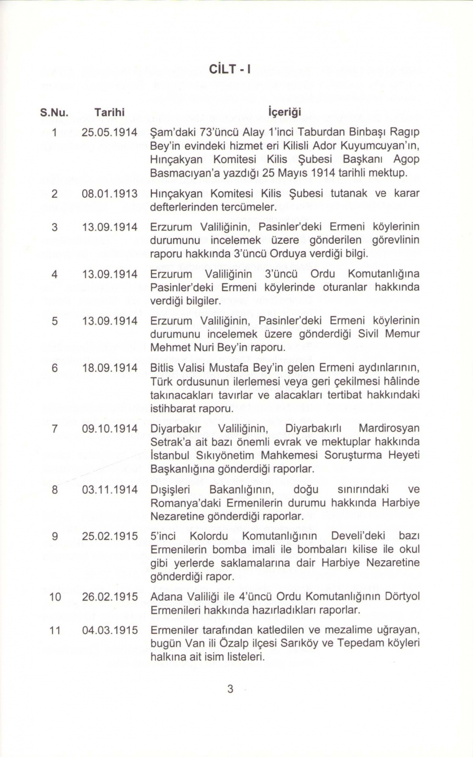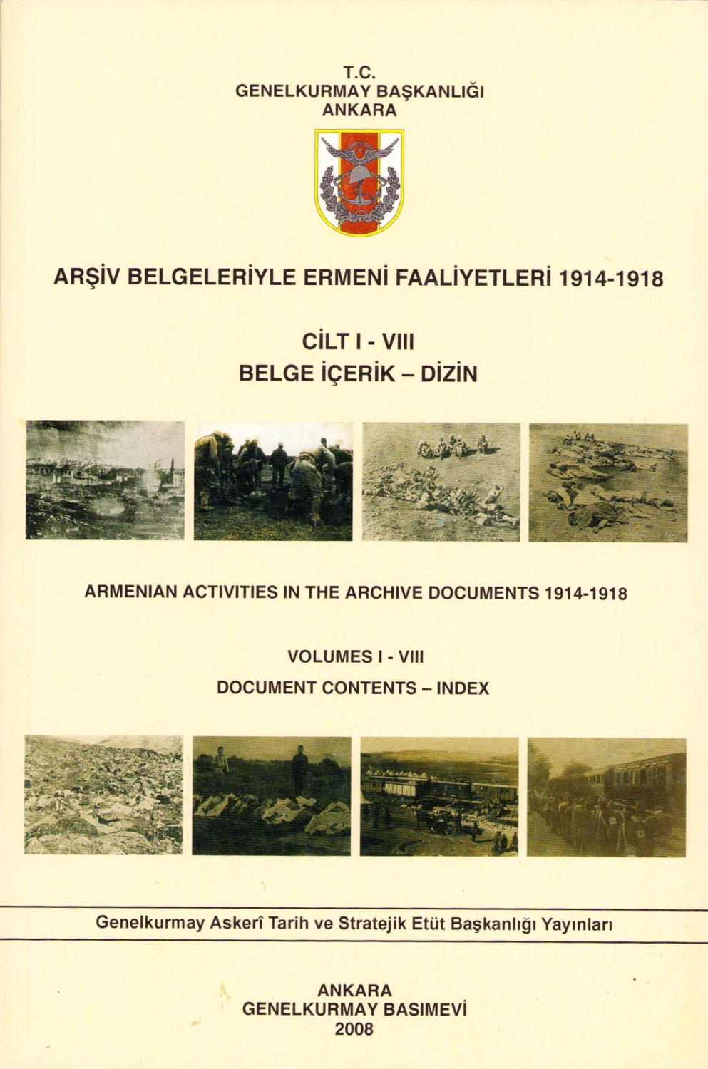 Arşiv Belgeleriyle Ermeni Faaliyetleri 1914 - 1918, Cilt I - VIII Belge İçerik - Dizin, Ankara Genelkurmay Basımevi, 2008, Türkçe - İngilizce, 253 sayfa, 16x24 cm