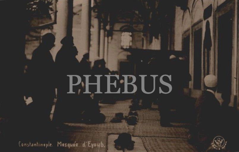 Eyüp Camii´nde namaz kılan cemaat, "Constantinople.Mosquée d´Eyoub", 14x9 cm....