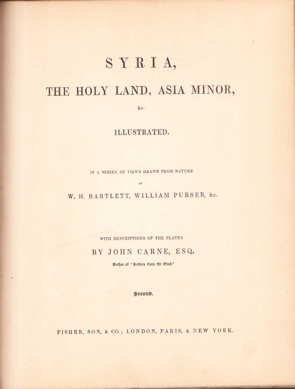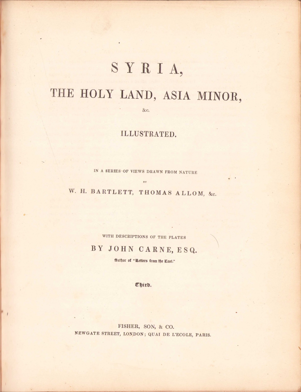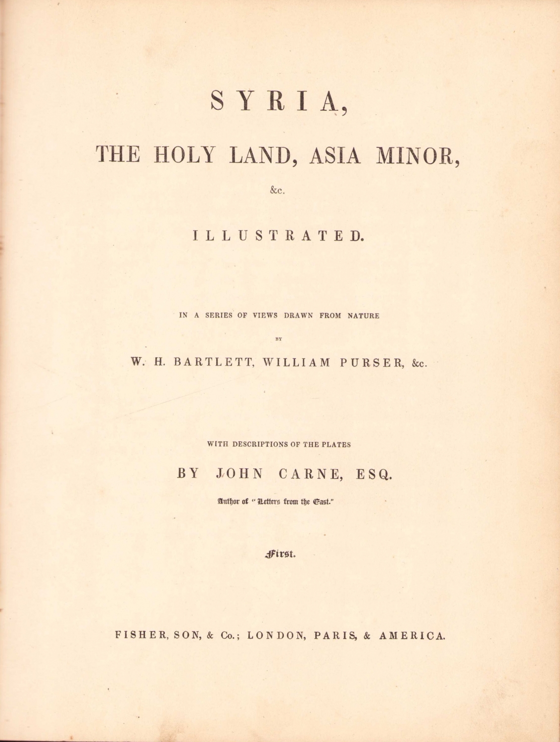 Syria, The Holy Land, Asia Minor, John Carne, Londra, Üç cilt, 1838, Ficher, Son& Co, Thomas Allom ve W. H. Bartlett'in illüstrasyonlarıyla, İngilizce, ebrulu cildinde haliyle, 21,5x28 cm.