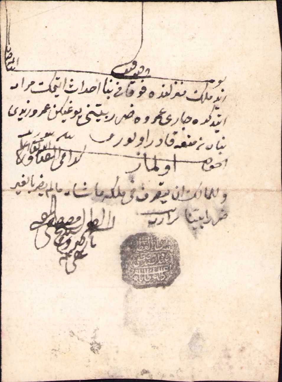 Fevkani bina ihdas etme meselesiyle alakalı verilmiş fetva, mühürlü, 8x11 cm.