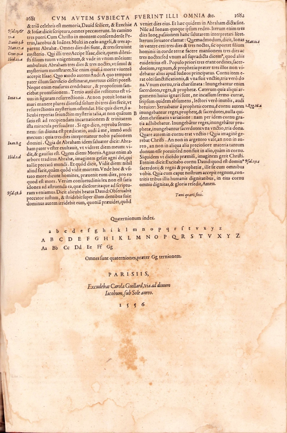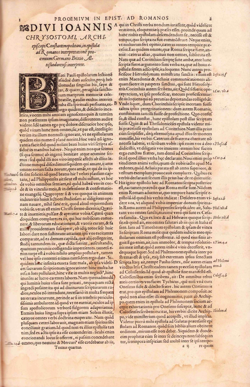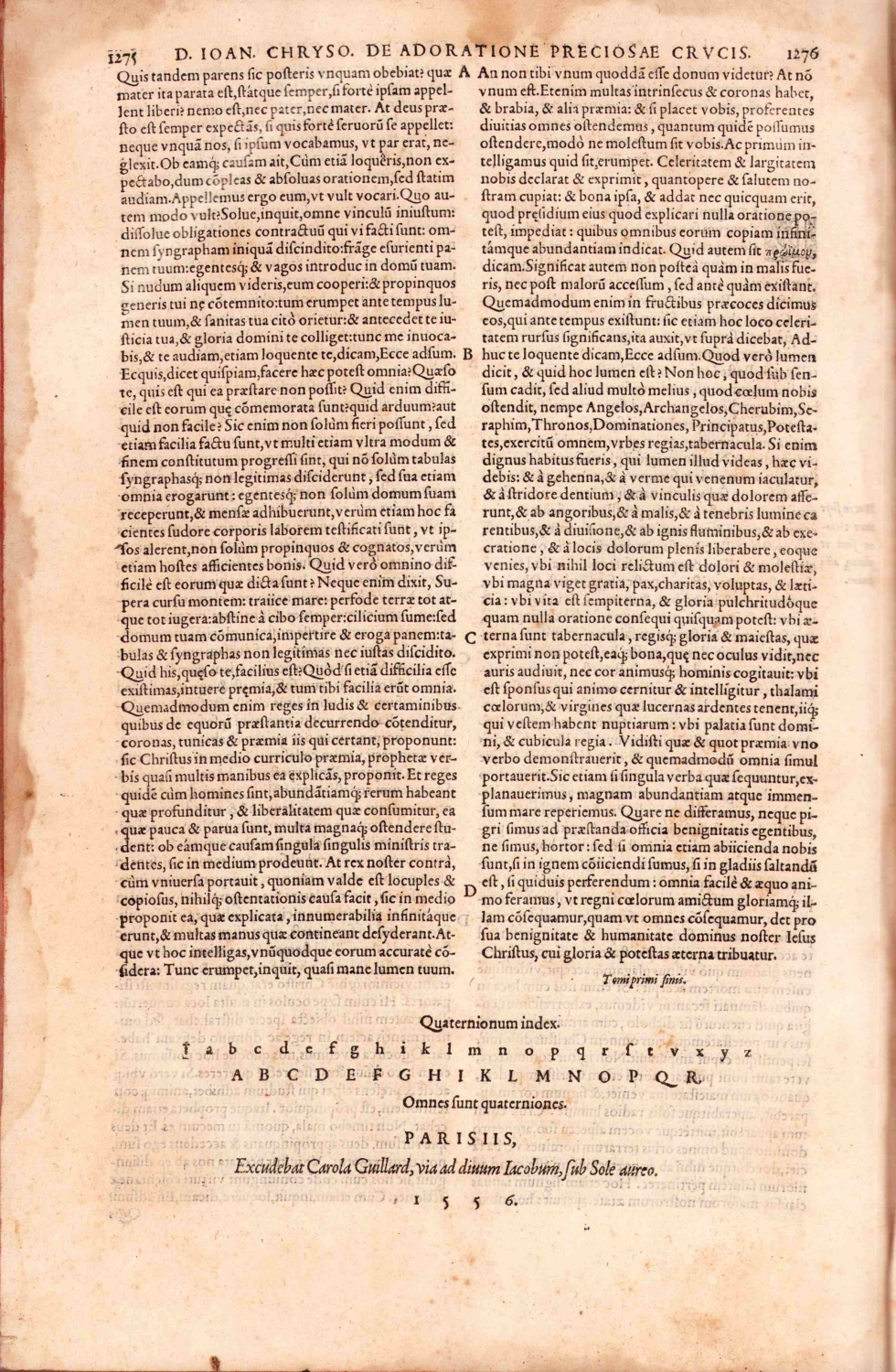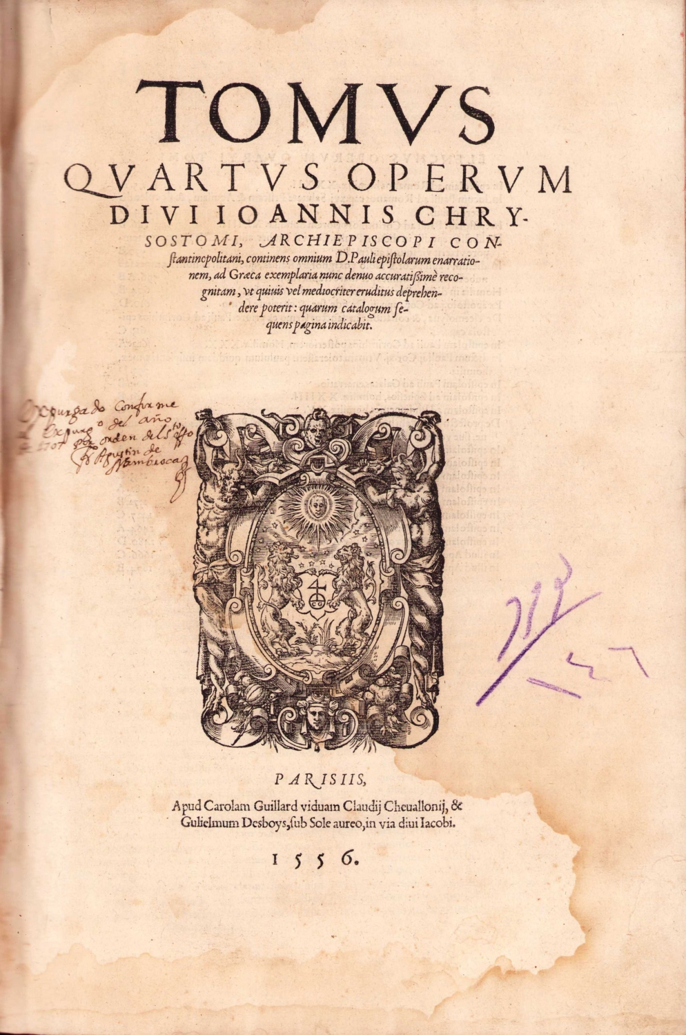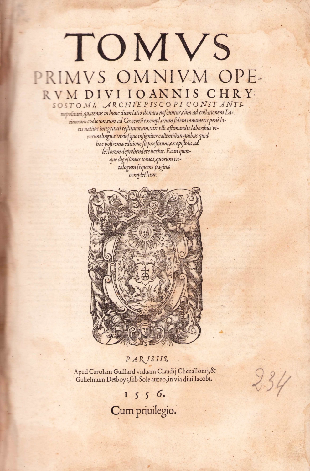 İstanbul Patriği Aziz Ioannes Khrysostomos'un Külliyatı, beş cilt halinde ilk kadın matbaacılardan Charlotte Guillard tarafından 1556'da Paris'te Soleil d'Or Matbaasında beş cilt halinde yayınlanmıştır. I. cilt, Khrysostomos'un Ahd-i Atik'e dair vaazlarının, IV. cilt ise Aziz Paulus'un mektuplarına dair yaptığı şerhlerin Latince tercümelerini içermektedir.