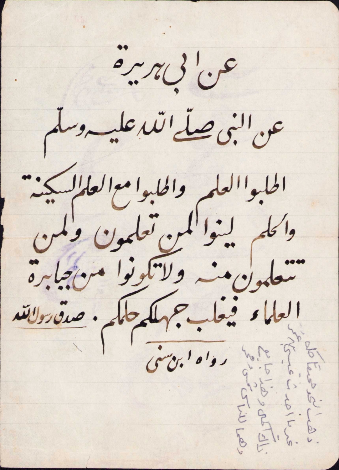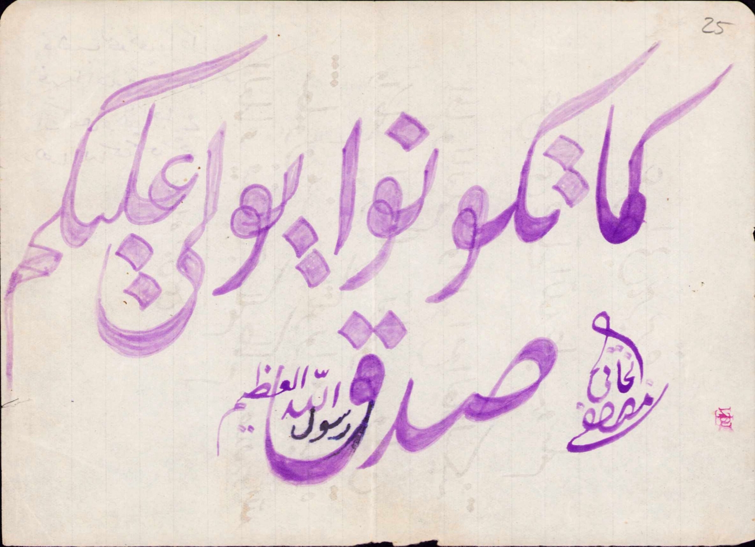 Celi talik hadis-i şerif, Mustafa Necati ketebeli, arkasında talik Hadis-i şerif, ketebesiz, 14x20 cm.
