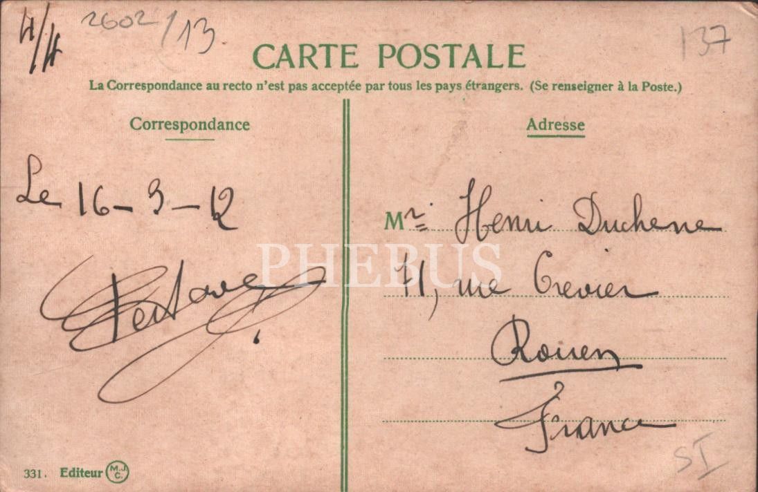 Arka yüzünde, 16 Mart 1912 tarihli Fransızca mektup yer almaktadır.